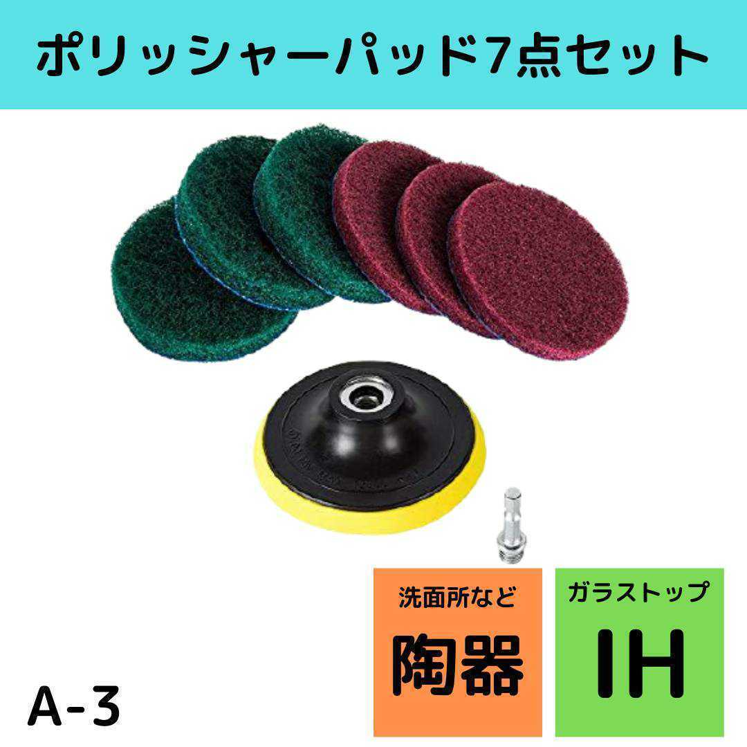 電動ドライバー、電動ドリルで使用するポリッシャーパッド7点セットです。
