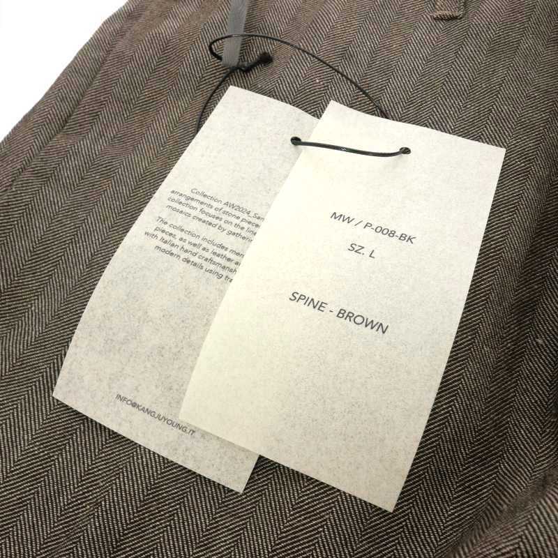 未使用品 カング KANG ADJUSTABLE BACK PLEATS WIDE FIT TROUSERS パンツ スラックス L ブラウン 茶 MW/P-008-BK メンズ
