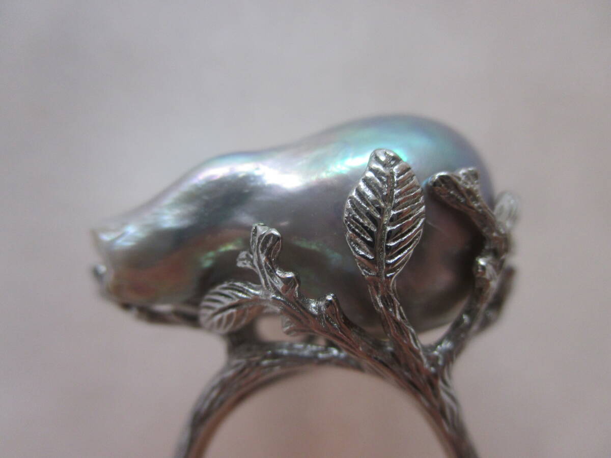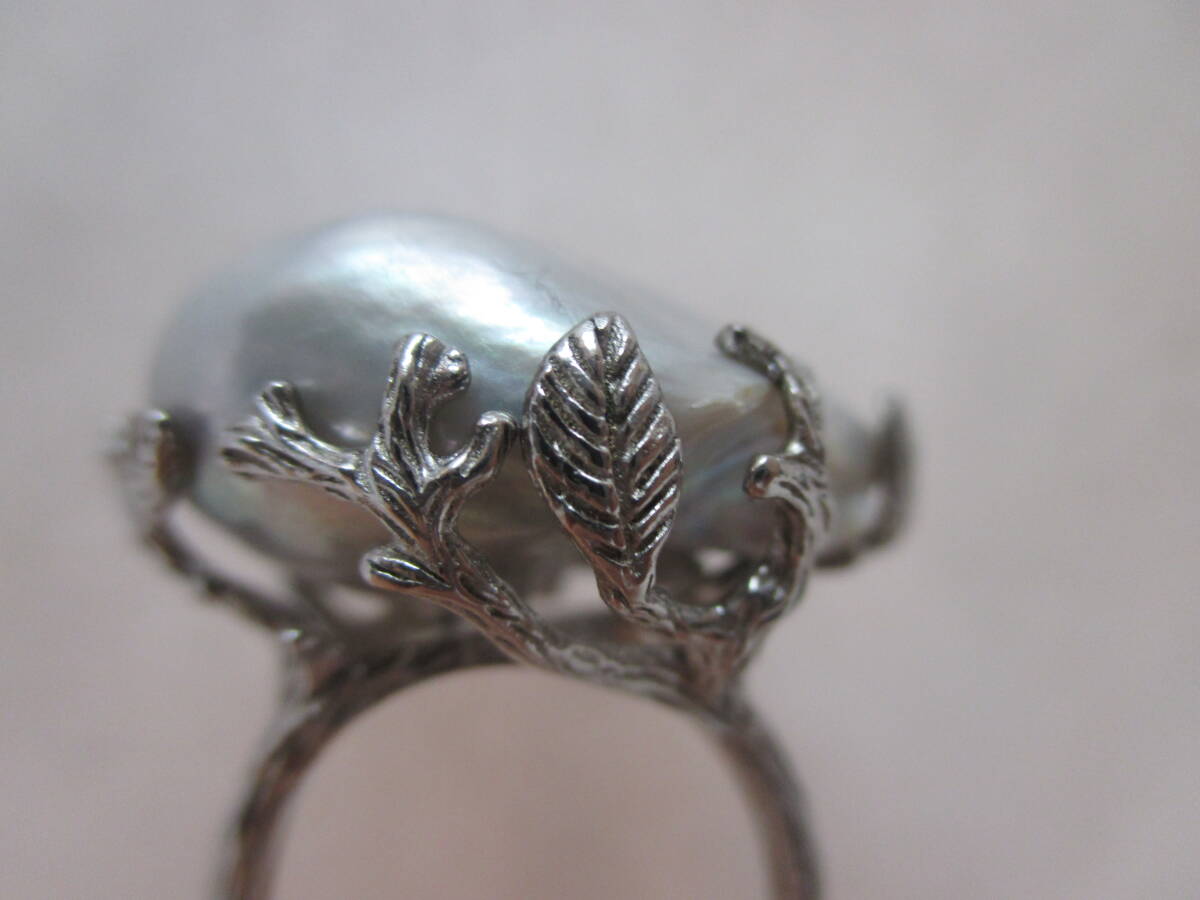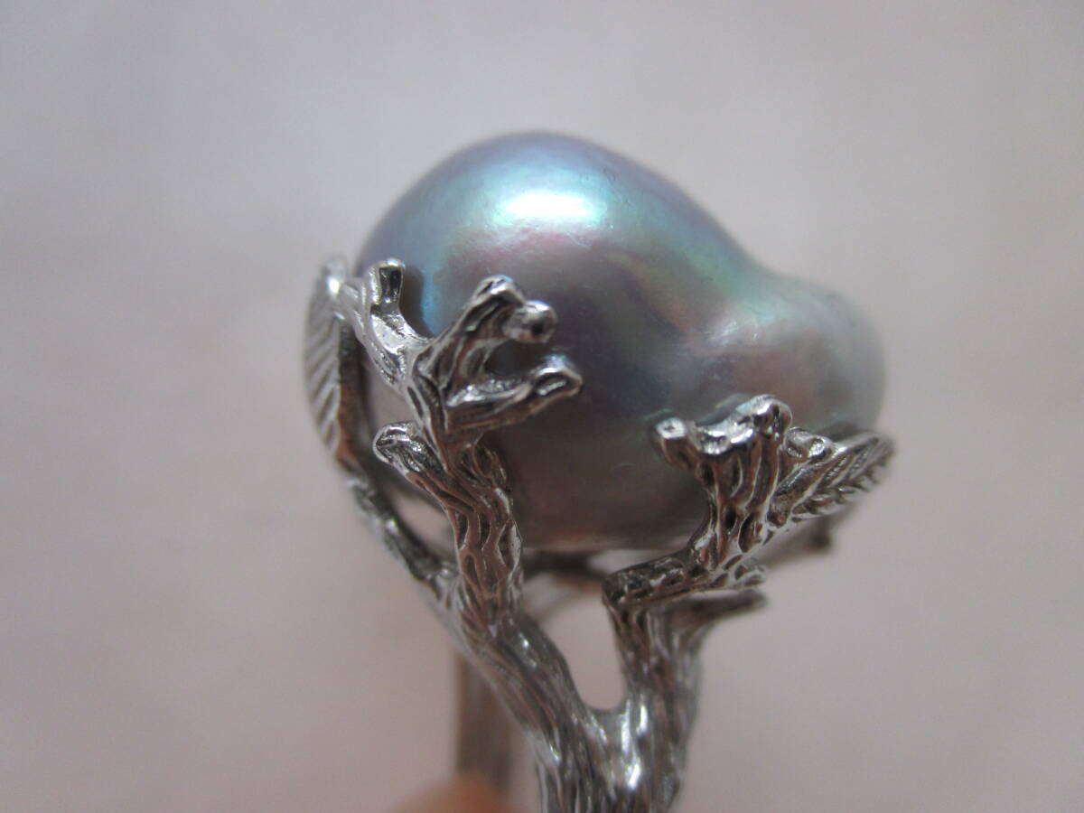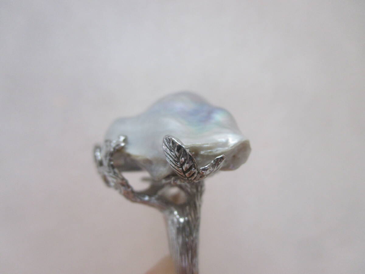 こういった銀細工でのアールヌボーの台座でパールリングは珍しいと思います。