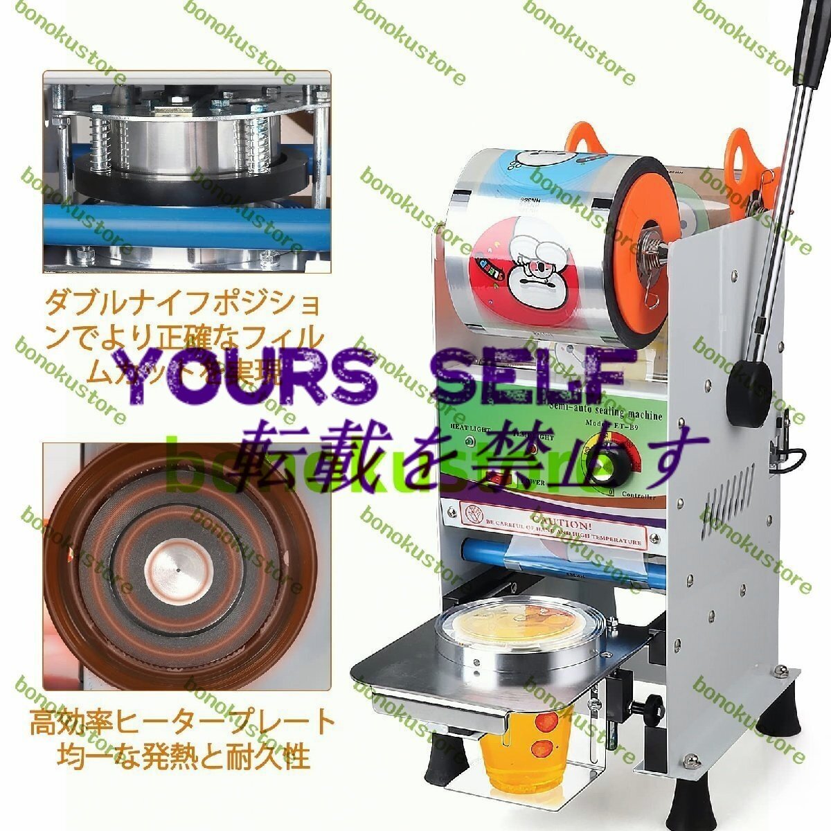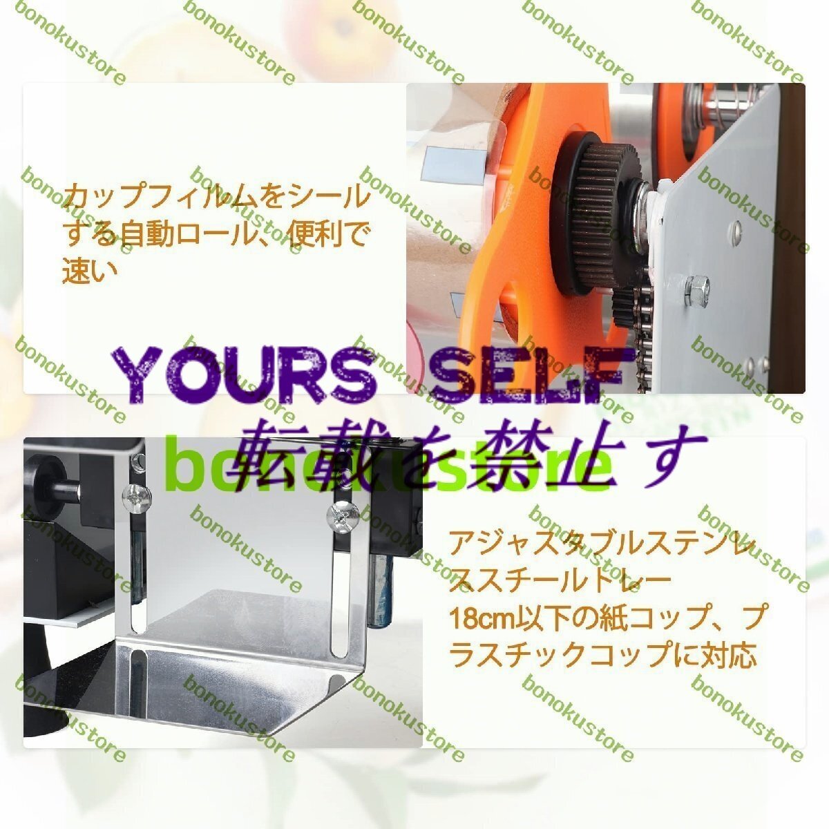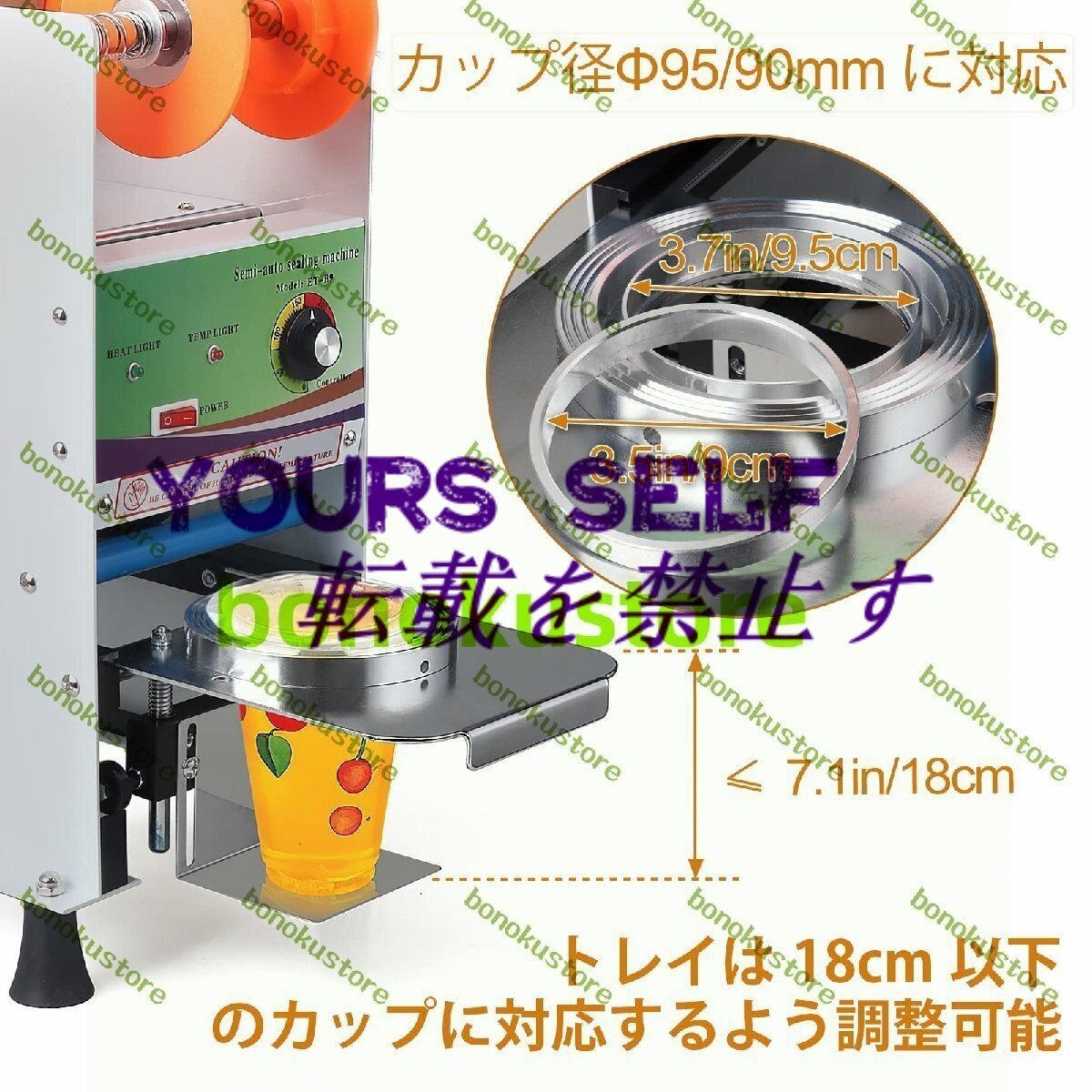 商品説明 【半自動式カップ シーラー機】カップシールフィルムを自動できにロールします 【対応カップとフィルム】口径 90/95mm、18cm以下高さのカップ; 0?250度の温度範囲で、長さ13CM以下のPE / PP / PET/イージーピールフィルムなどのさまざまな材料のカップを密閉できま