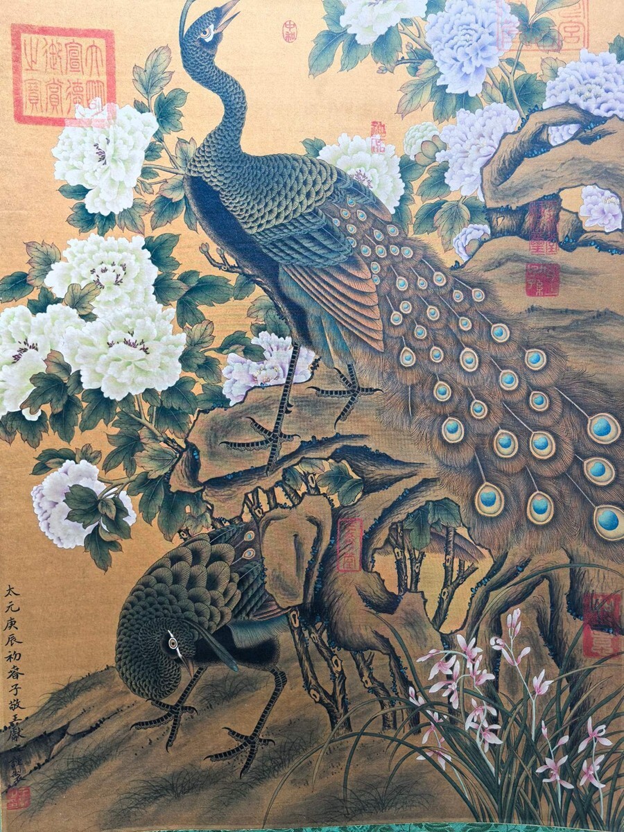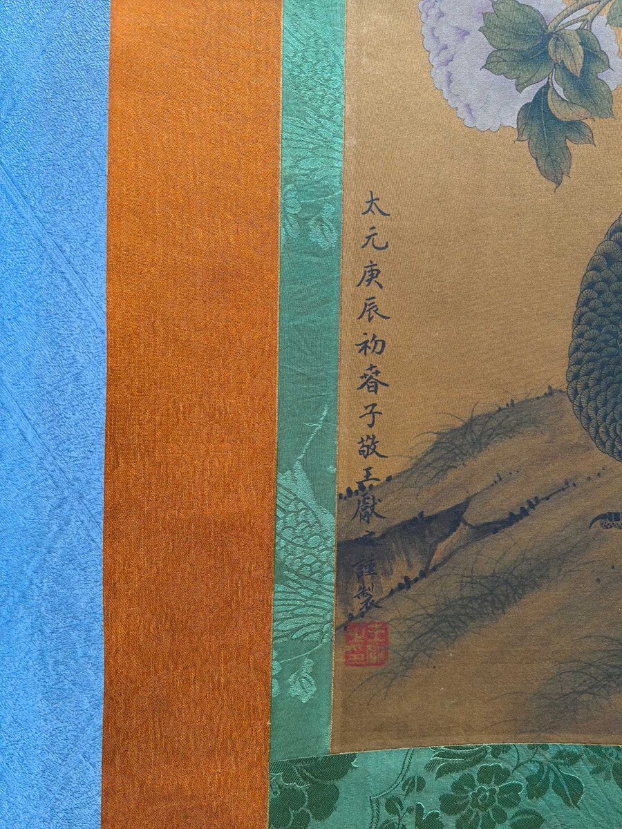 【瓏】「王献之作 錦圃鳴春図」晋代画家 肉筆絹本 掛け軸 書画立軸 巻き物 中国書画 古美術 蔵出