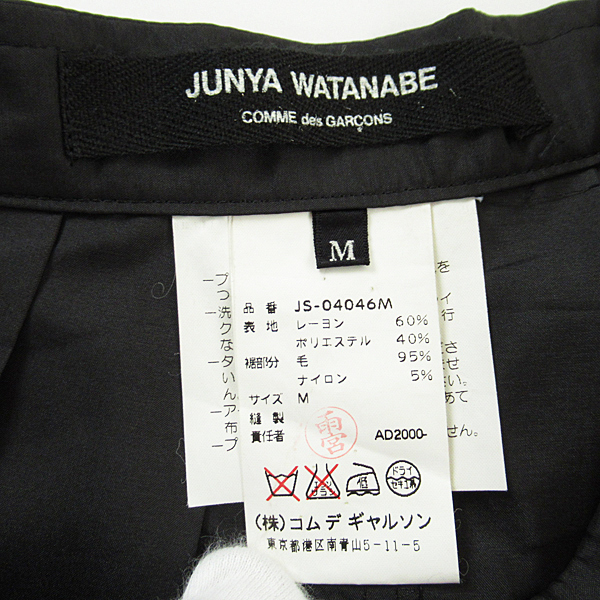 商品名 | AD2000 旧内タグ JUNYA WATANABE COMME des GARCONS 初期 ジュンヤワタナベ 裾切り替え プリーツスカート 黒 レディース M |