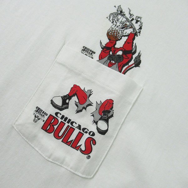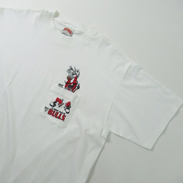 | 商品名 | 90s USA製 NUTMEG 90年代 NBA CHICAGO BULLS シカゴブルズ プリント ポケットTシャツ 白 メンズ XL |