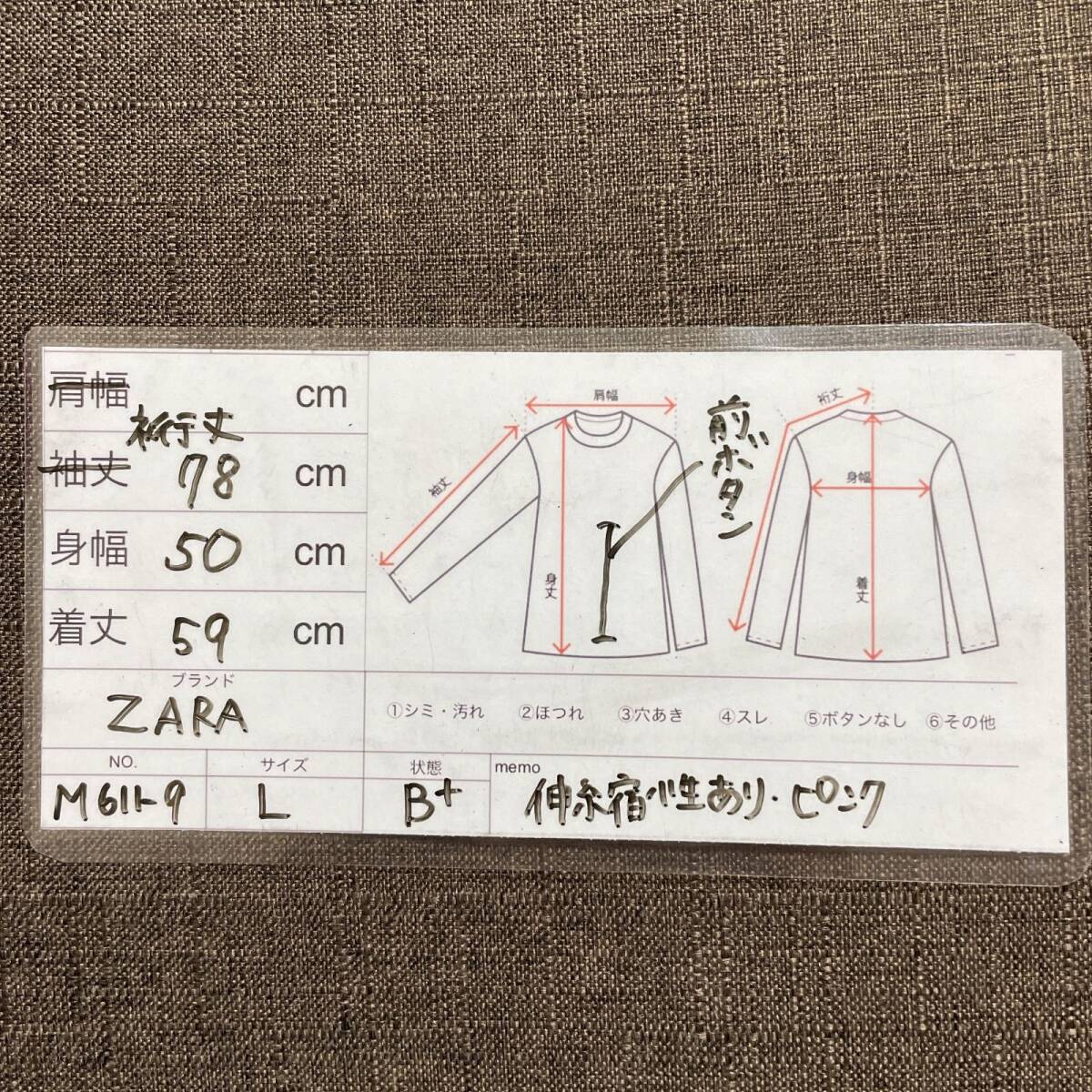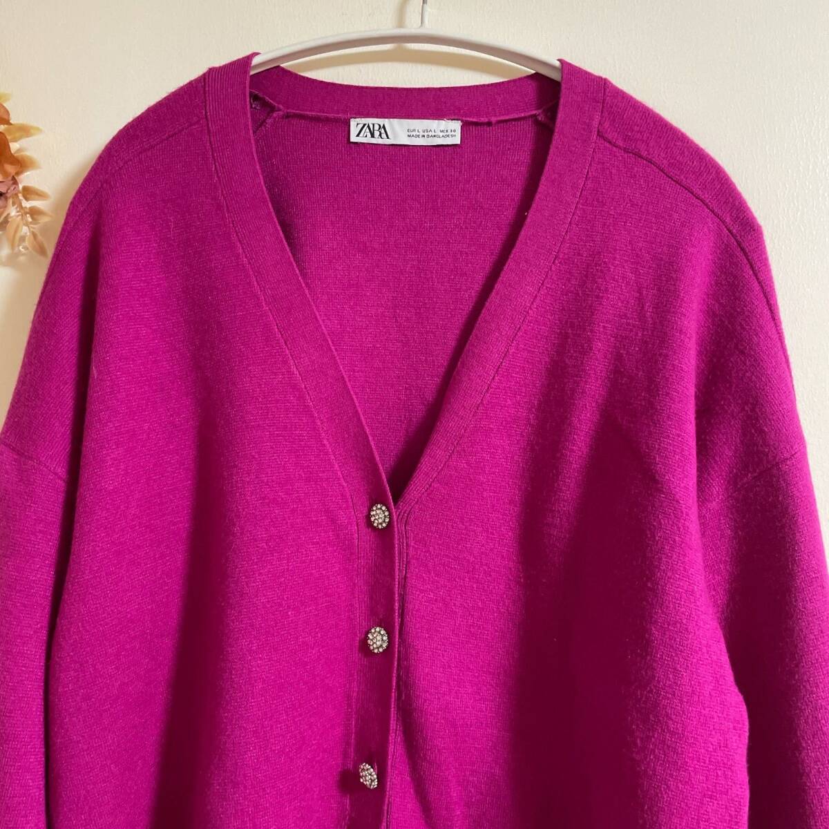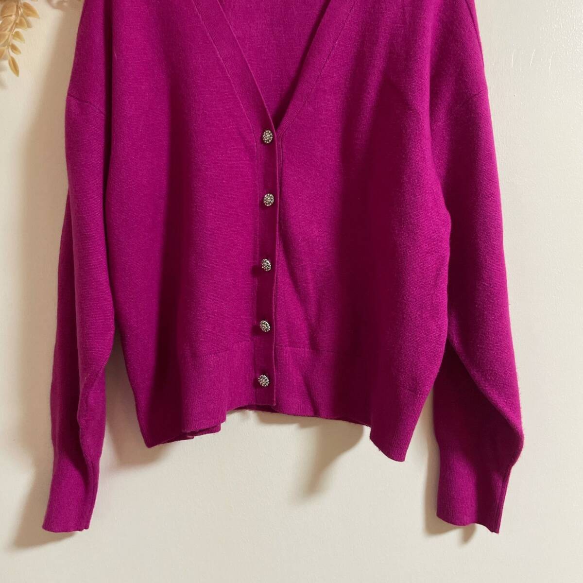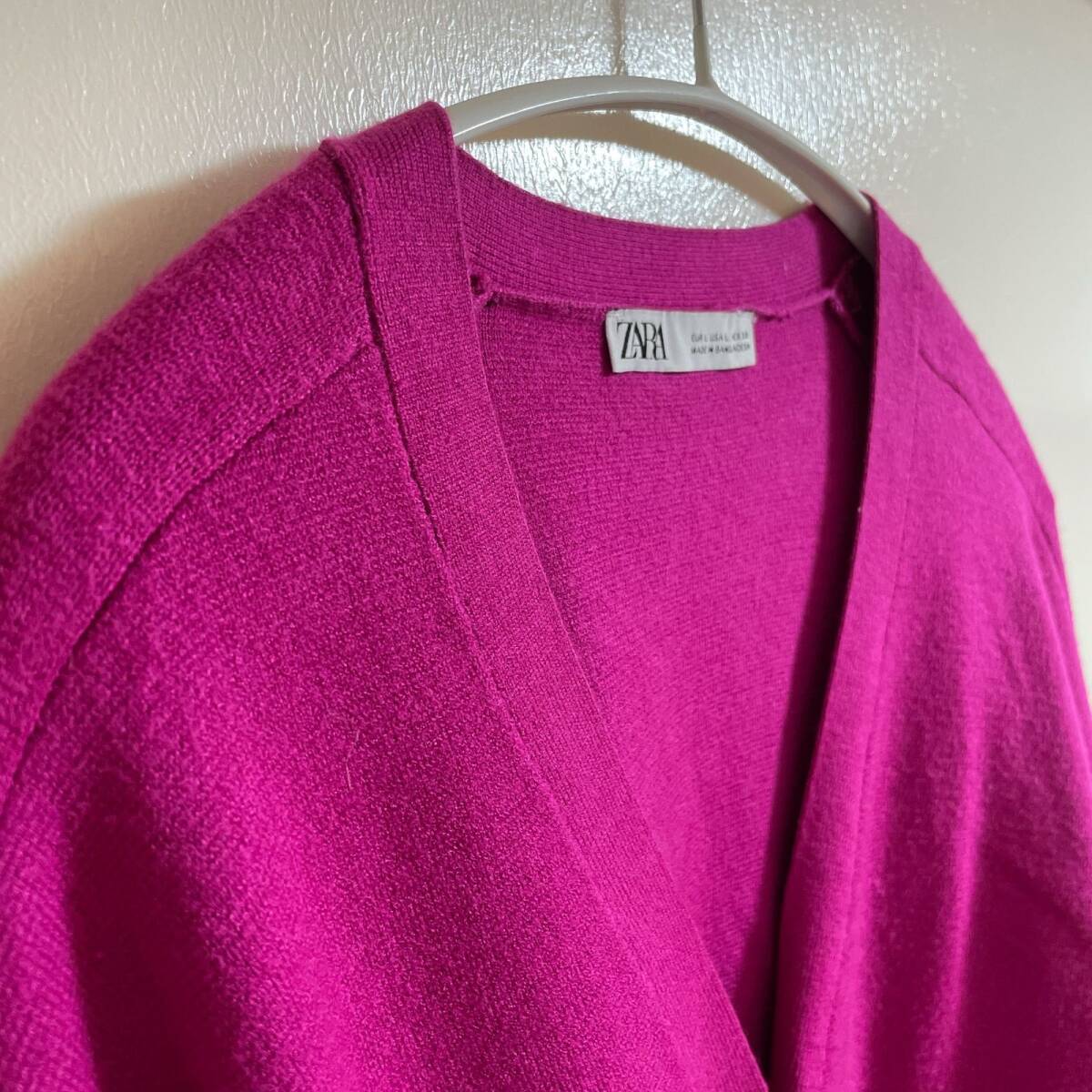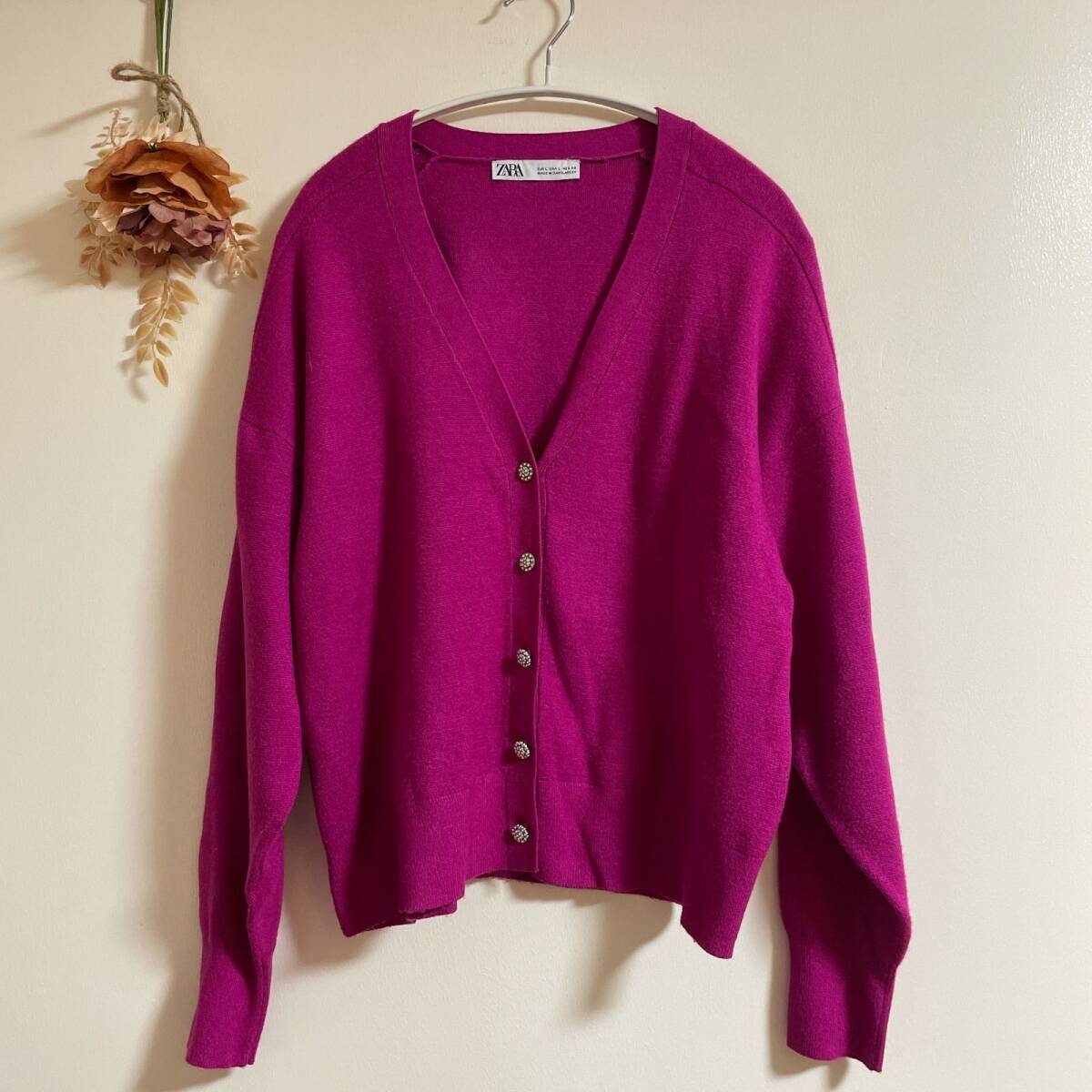 【ZARA】 カーディガン L ピンク 前ボタン 厚手 伸縮性 かわいい おしゃれ 羽織り 美品