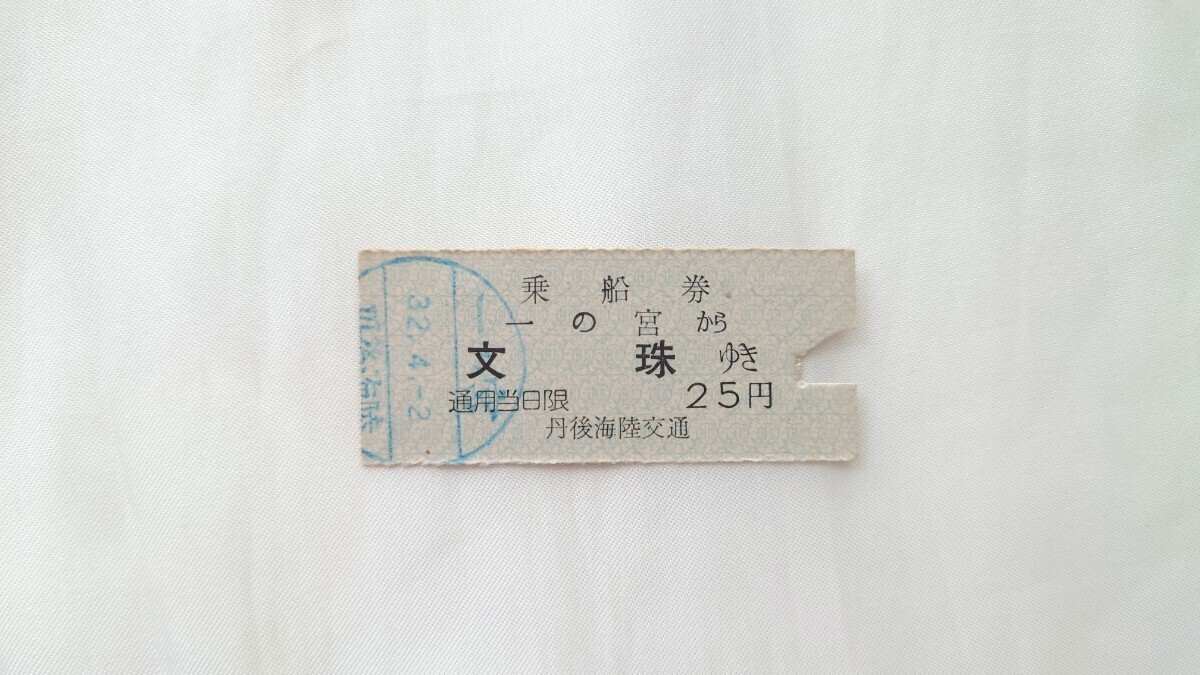 △丹後海陸交通△一の宮から文珠ゆき乗船券△半硬券昭和32年