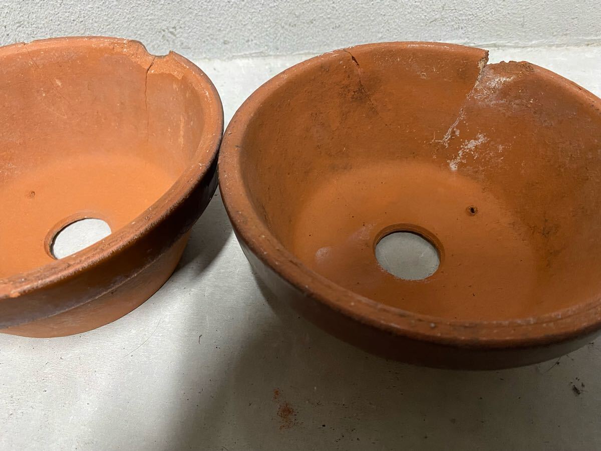 欠け傷やひび割れ傷、窯傷があり屋外で保管していたので水あかや土汚れが多少あります。詳しくは画像をご確認ください。