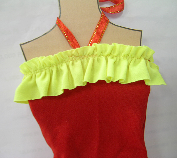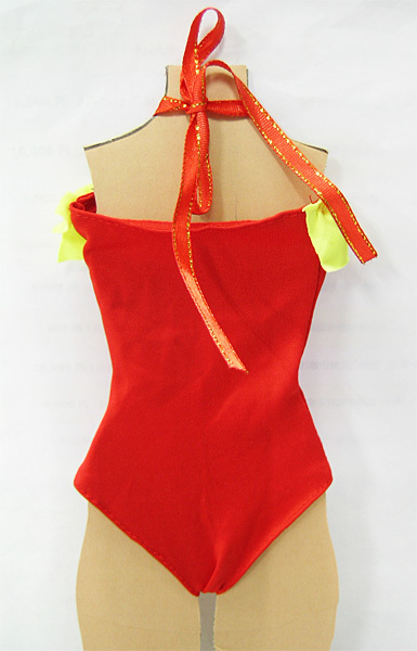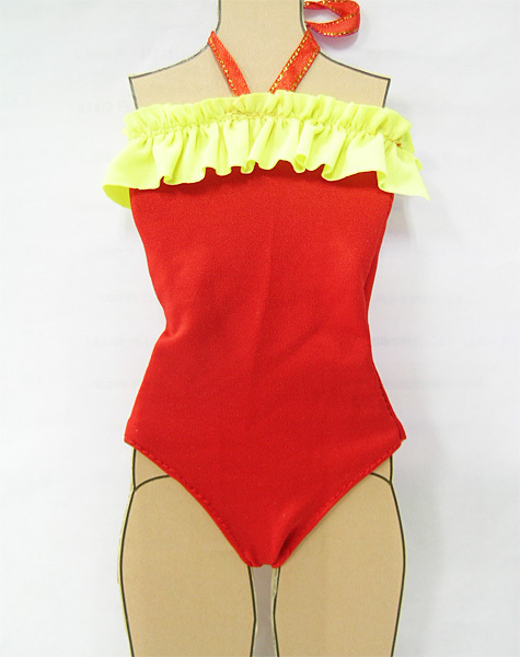 値下 1/3 ドール用 水着 ビキニ 赤 × 黄色 レッド 35 ホルターネック ワンピース 洋服