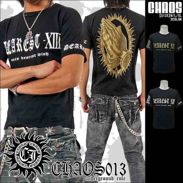CHAOS JAPAN DEARESTロゴプリ バックプレイハンドプリントTシャツ ch-ry-0005 新品 ブラック×ホワイト M