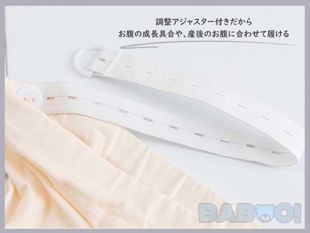 アジャスター付きで、日々大きくなるお腹にも長時間の着用で窮屈感がなく、快適産前産後共に履ける