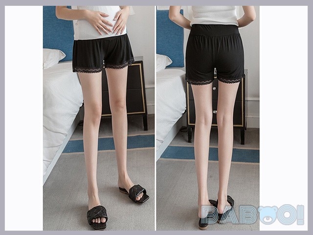 マタニティ ペチコート レギンスパンツ スパッツ ショート丈 裾レース 韓国風 Mサイズ 2枚セット 黒色 産前 産後 薄手 ウエストゴム 下着