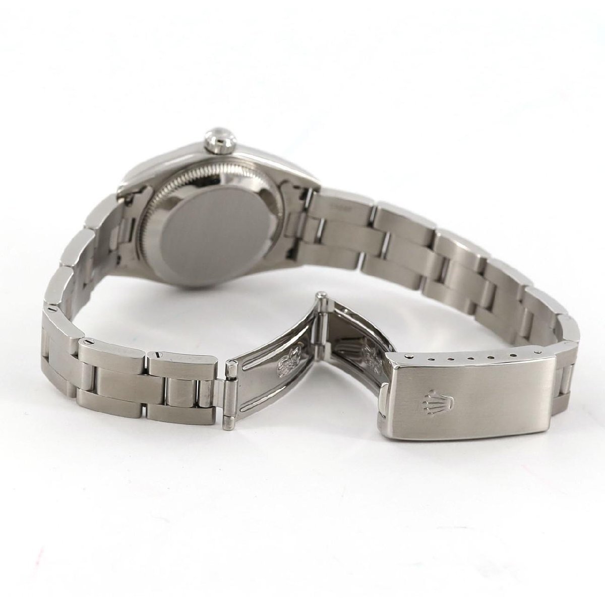ロレックスは日付表示の有無でラインが分かれますが、こちらは日付表示のないオイスターパーペチュアル。その中でもこちらは、1999年から2006年まで製造されていた76080。オールステンレスでシンプルな文字盤に、時針・分針・秒針のみとベーシックな意匠で、ロレックスの入門モデルとして最適です。