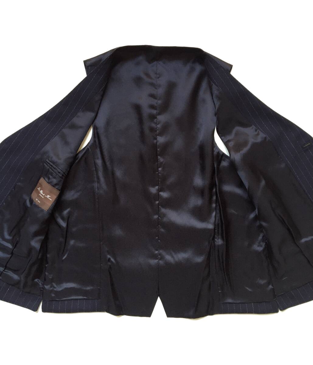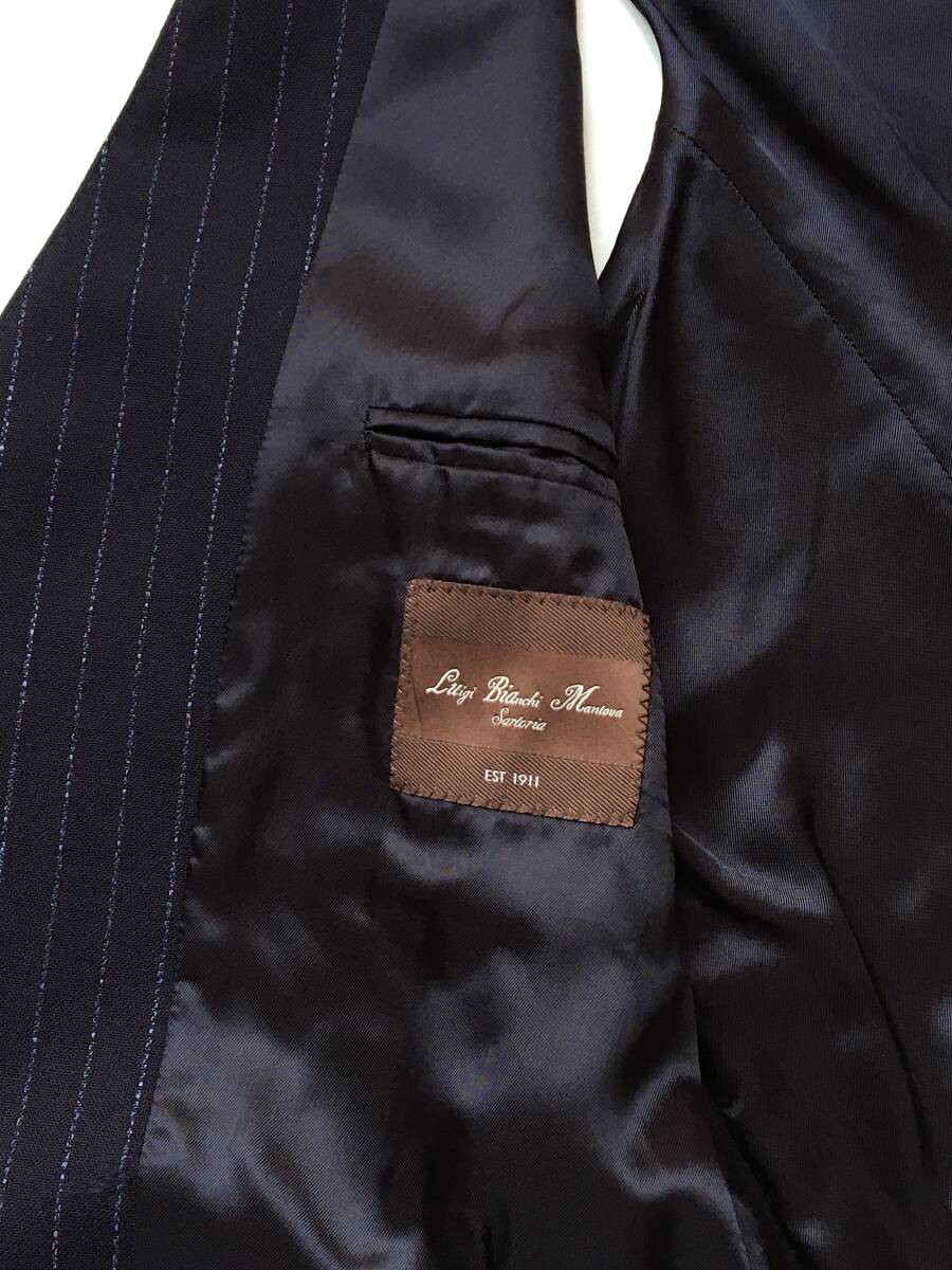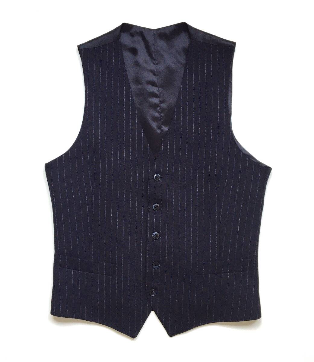 新品 秋冬 ルイジビアンキ マントヴァ サルトリア 48 M Luigi Bianchi Mantova ジレ ベスト ストライプ ダークネイビー ウール 定価3.6万