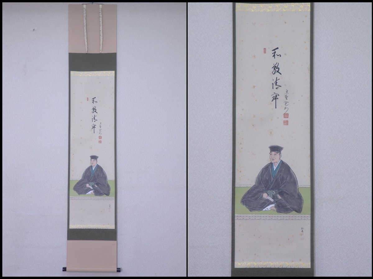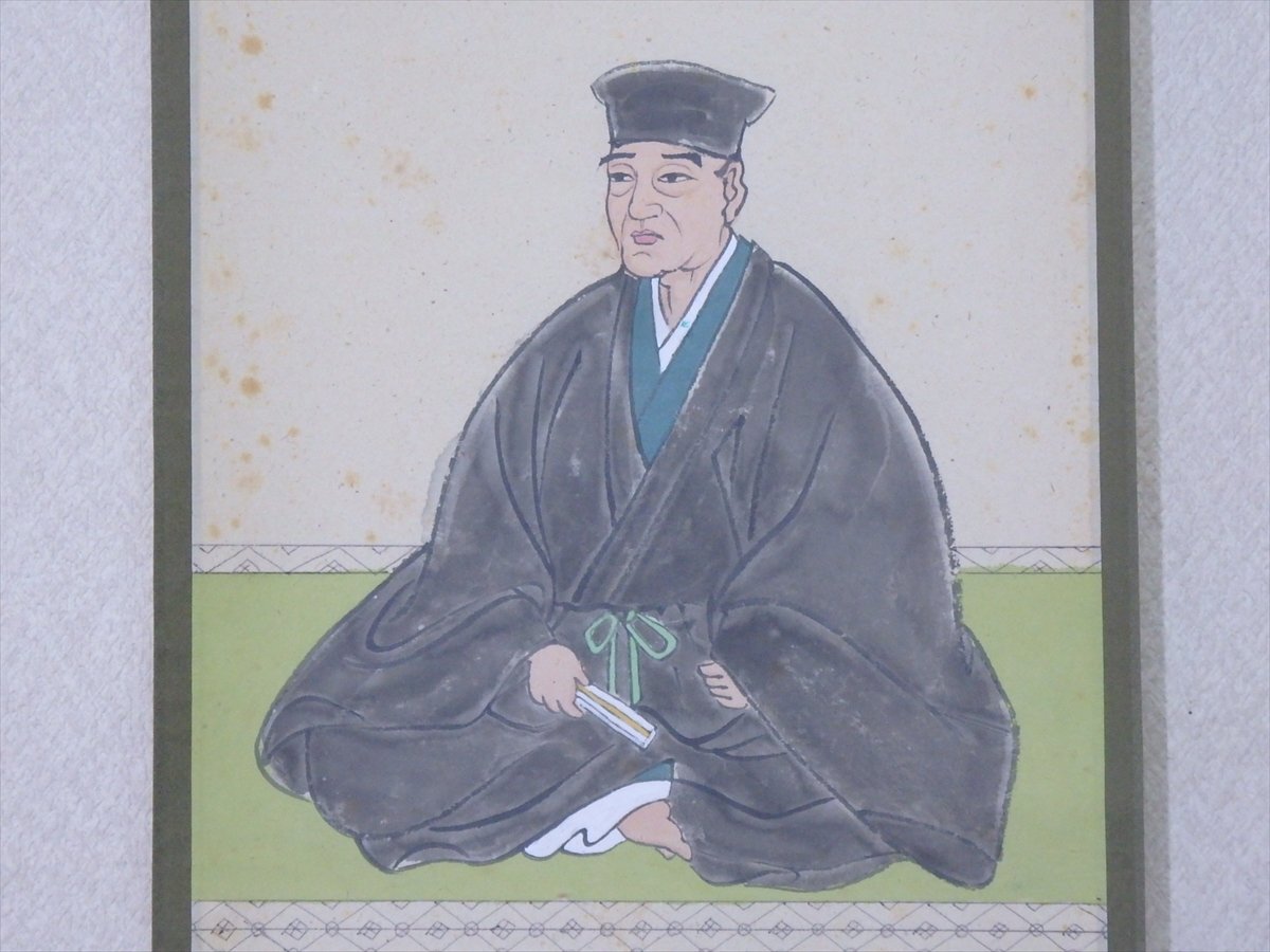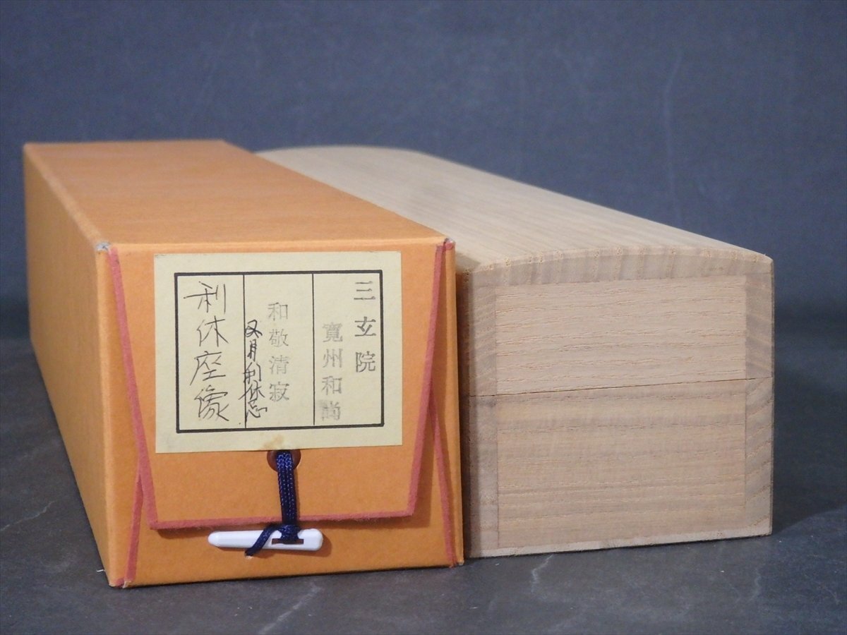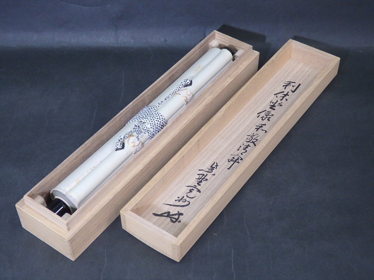 ★大徳寺 三玄院 紫野 長谷川寛州和尚 賛【掛軸 利休座像『和敬清寂』共箱】紙本 肉筆 田中松泉 画 幅31×全長170.2cm 茶道具
