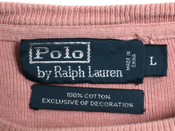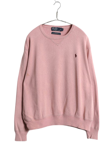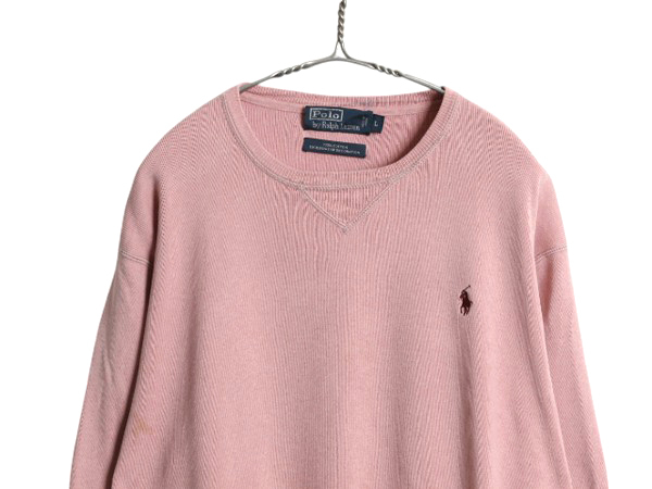 商品名 | 00s ポロ ラルフローレン リブ編み コットン ニット スウェット メンズ L / オールド セーター トレーナー ワンポイント 薄手 淡い ピンク |
