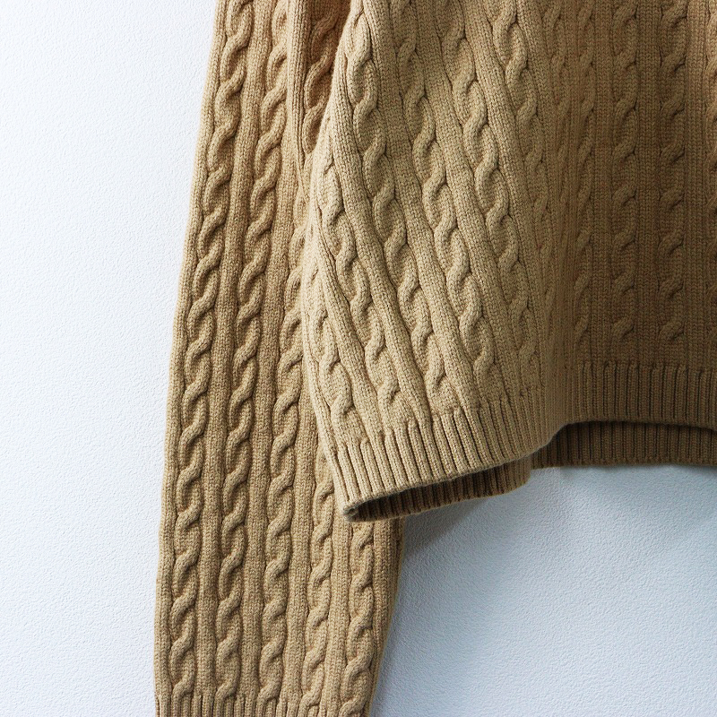 美品 定価17600円 ジムフレックス Gymphlex GY-D0099CPE ショート丈 ケーブルニット トップス 14/ベージュ セーター【2400014384277】