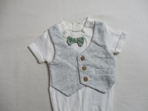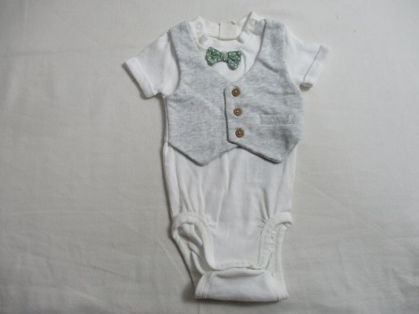 BG493【H&M・エイチ アンド エム】フェークレイヤード ネクタイ付き ロンパース 男児 白 66 | |