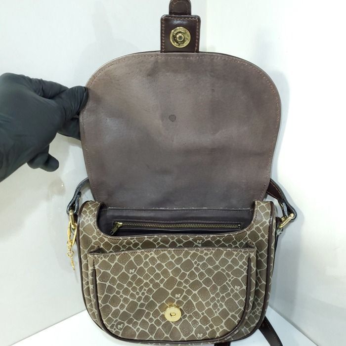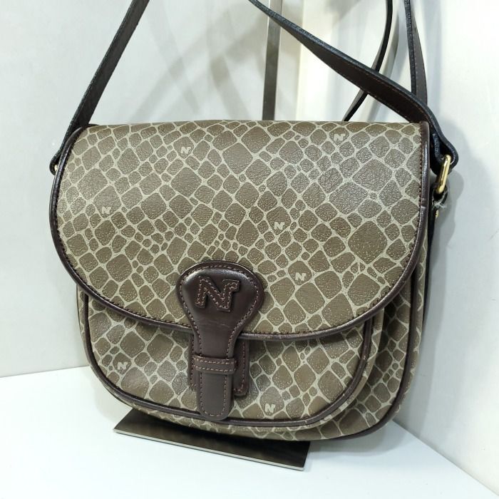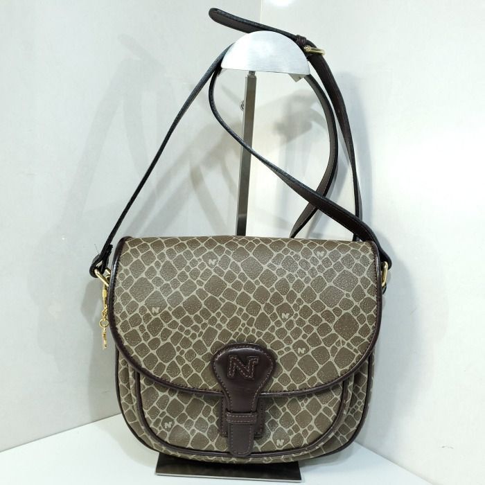 【商品名】ニナリッチ NINA RICCI PVC レザー ジラフ アニマル柄 肩掛け 斜め掛け ショルダーバッグ ブラウン グレー 3067540e20250312