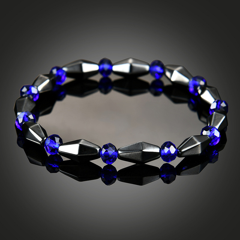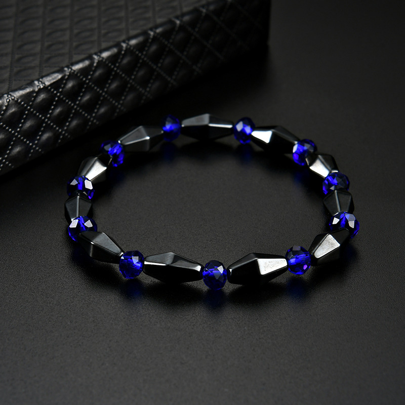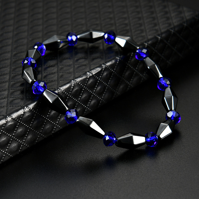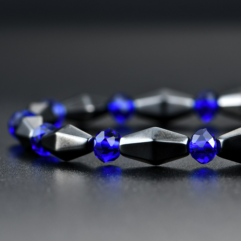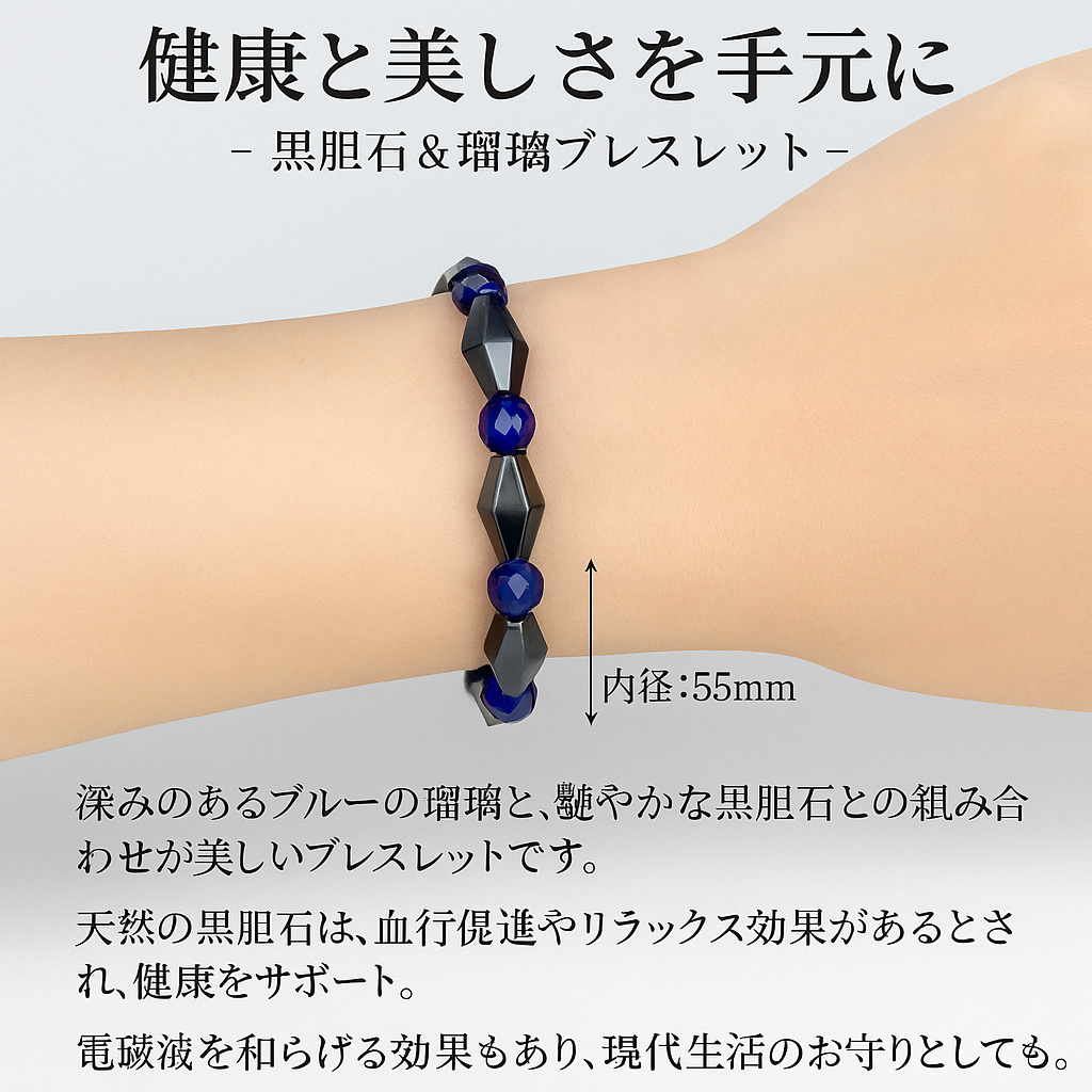 日々の健康と美しさをサポートする、天然黒胆石(ヘマタイト)と深いブルーの瑠璃を組み合わせた高品質ブレスレットです。