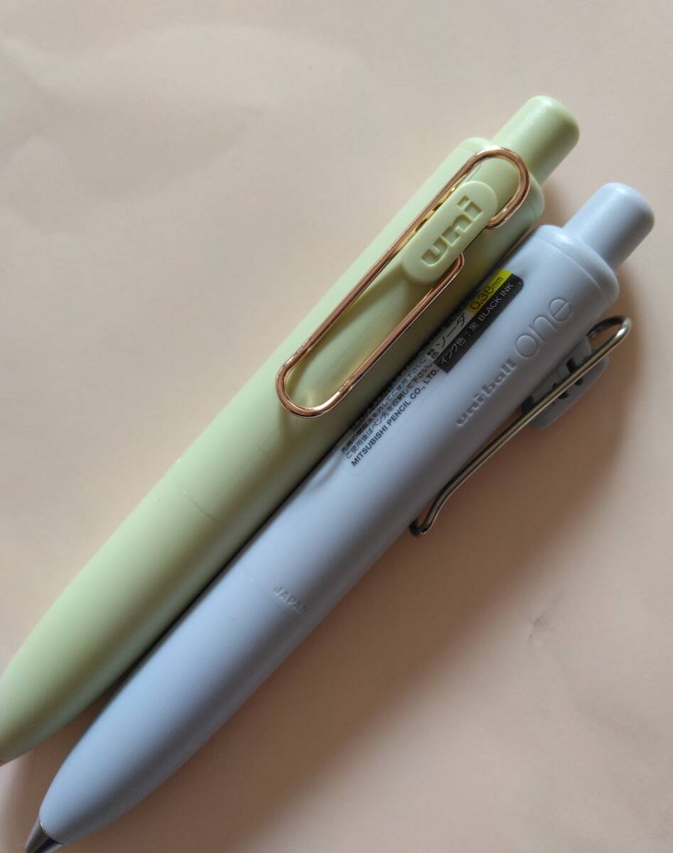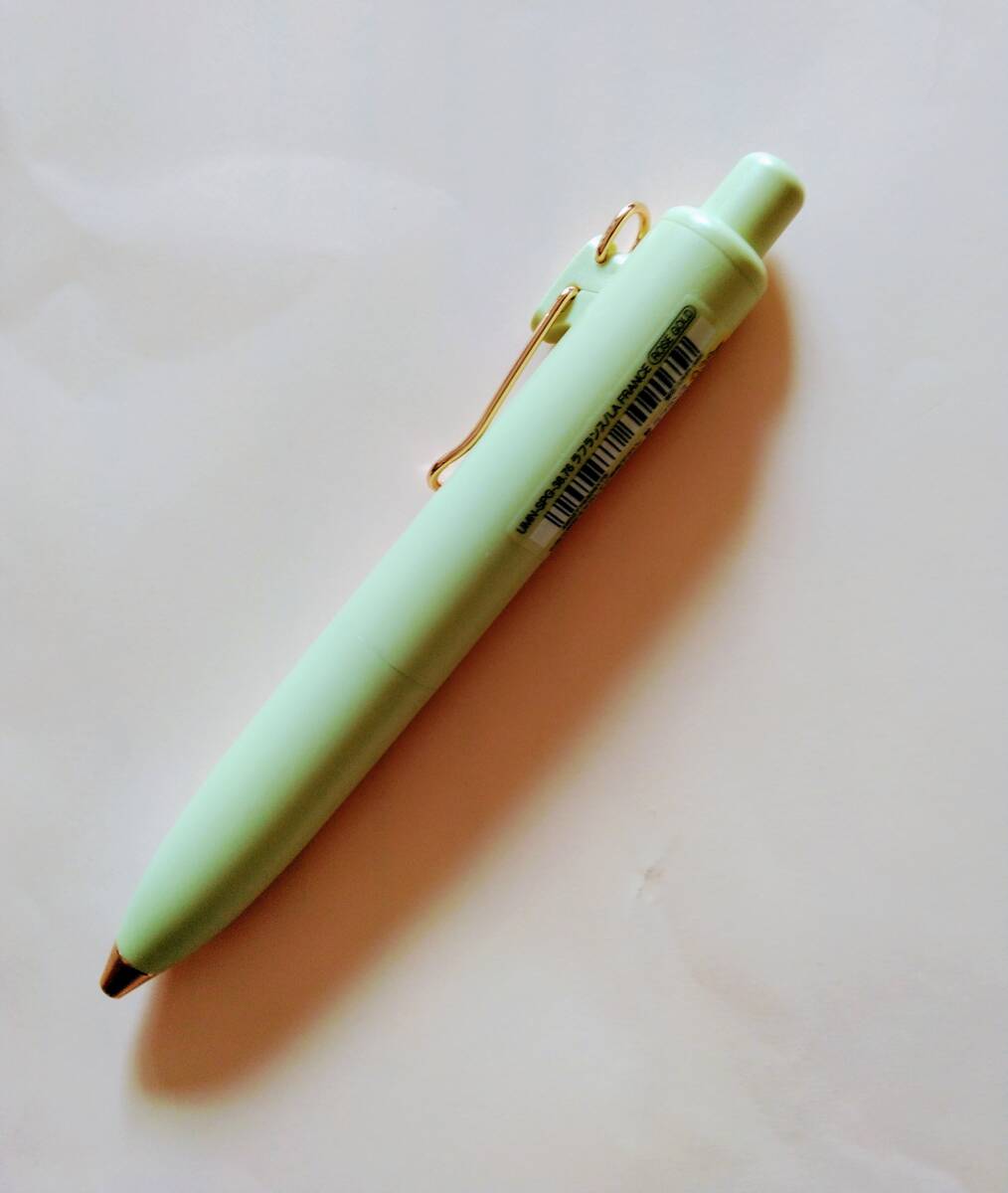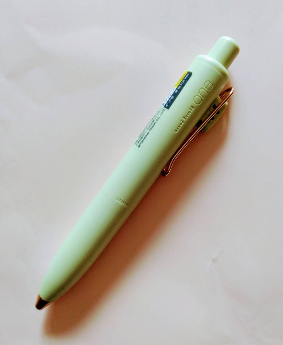 コロンと丸いフォルムが人気のユニボールワンPです。限定色コハクトウカラーのラフランスです。