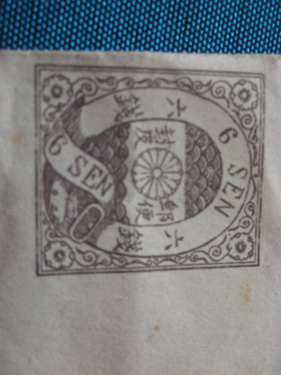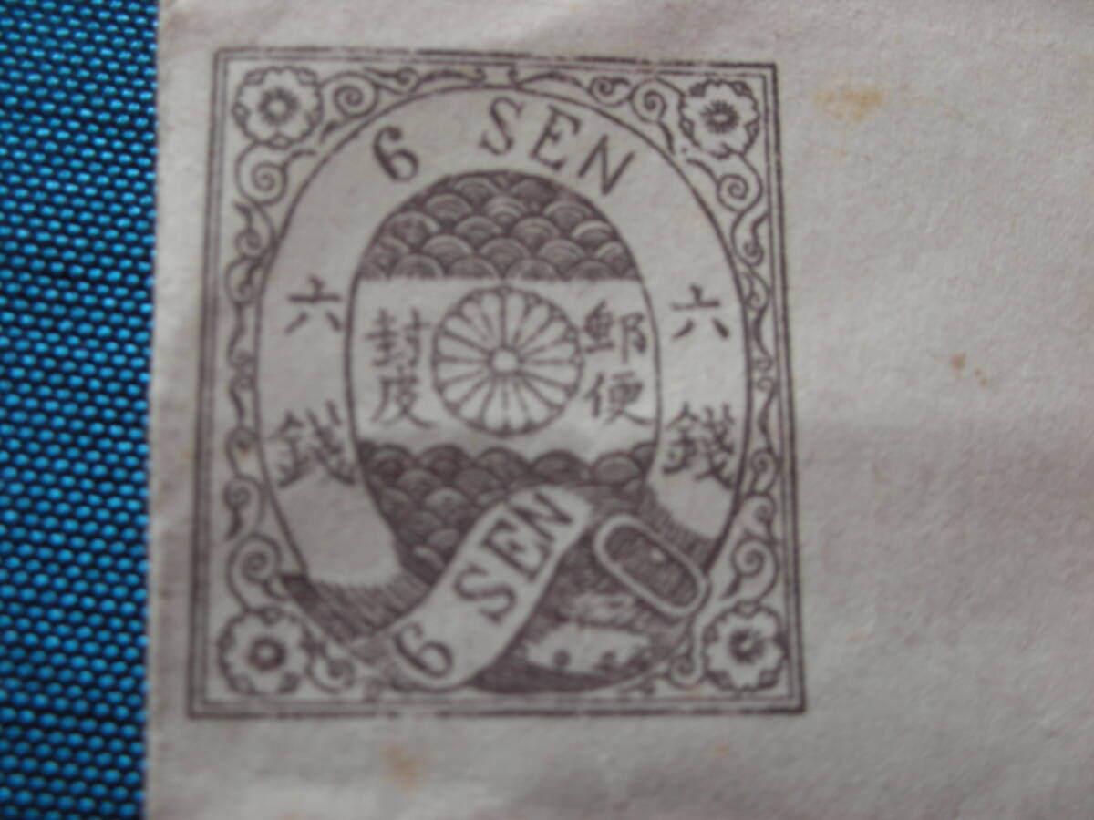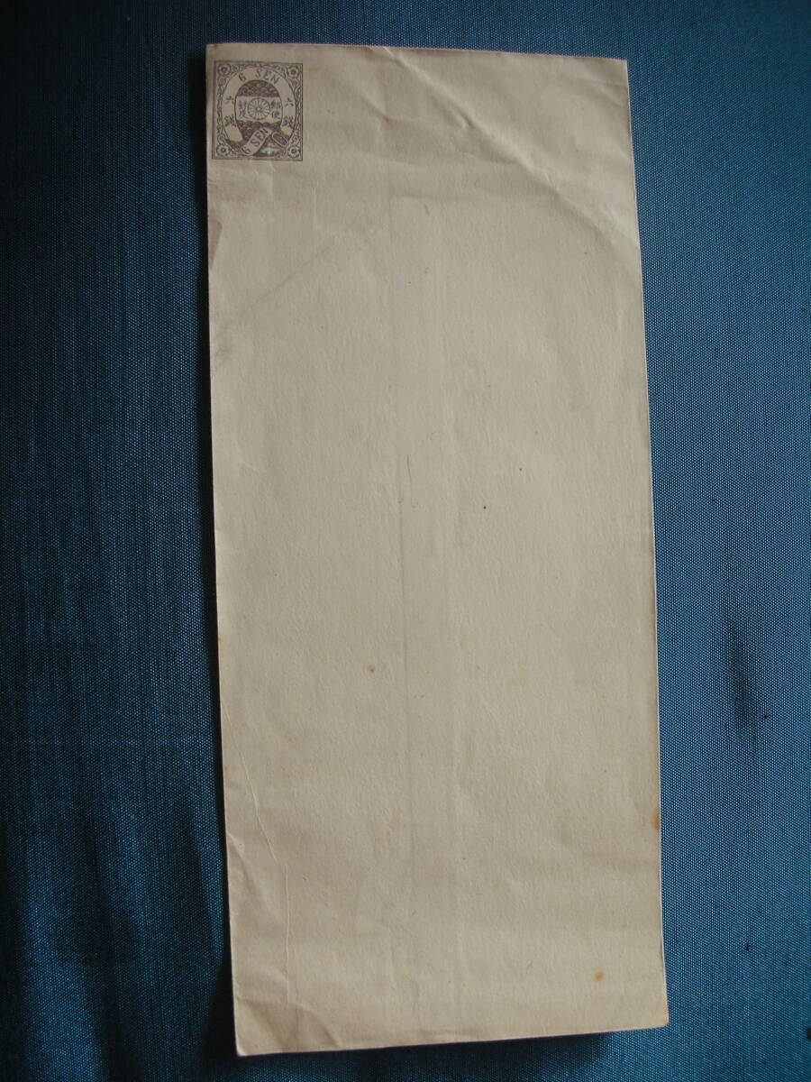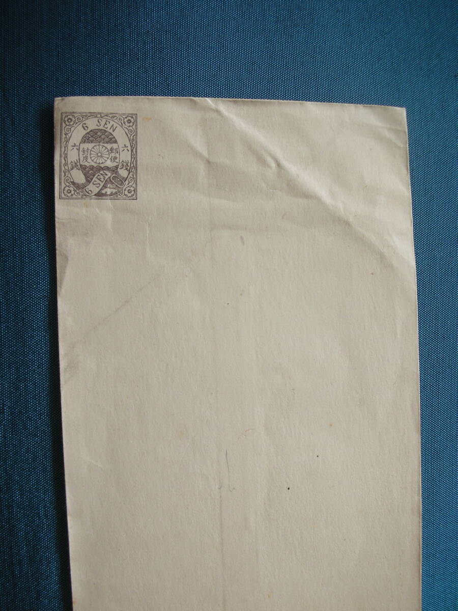切手付き封筒 手彫り封皮 長方形(和風筒形)6銭 茶 未使用 部分しわ有 型価40千円