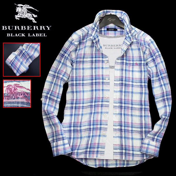 バーバリーブラックレーベル リネン(麻) ロールUP 切替 長袖シャツ