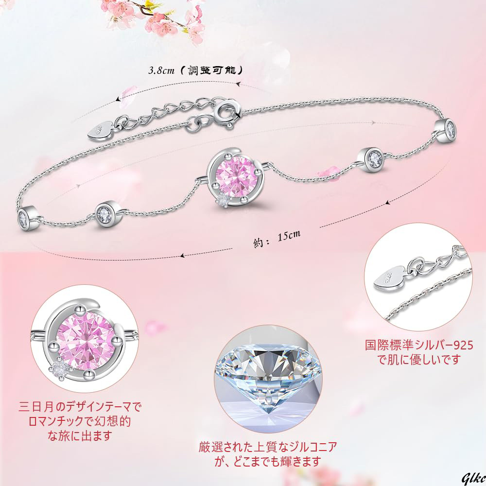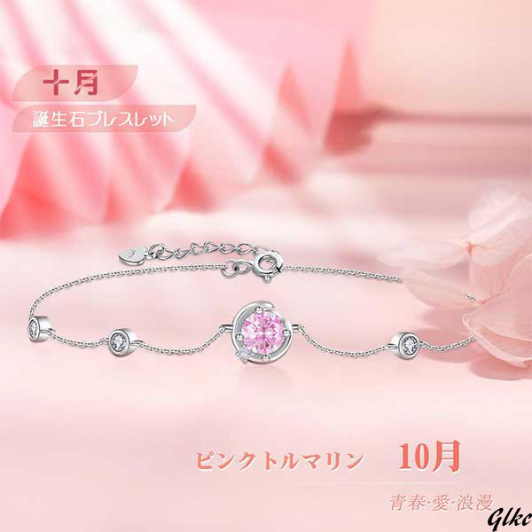 三日月モチーフに誕生石をイメージした、上品なレディースブレスレットです。