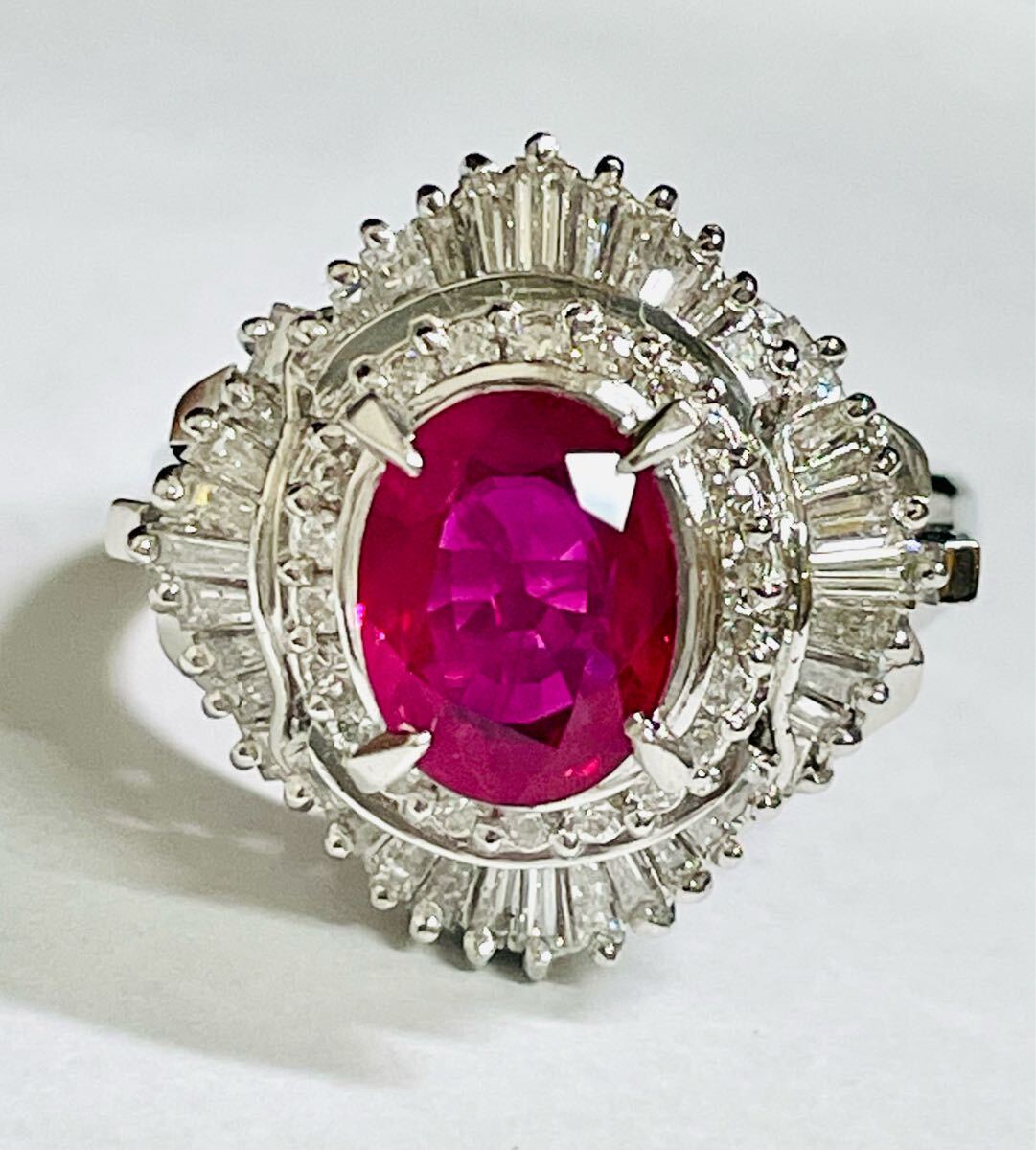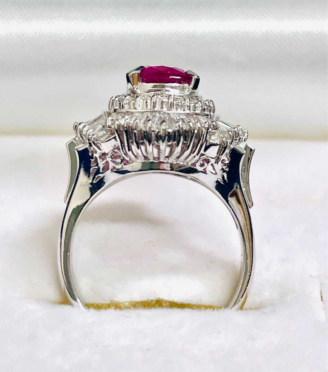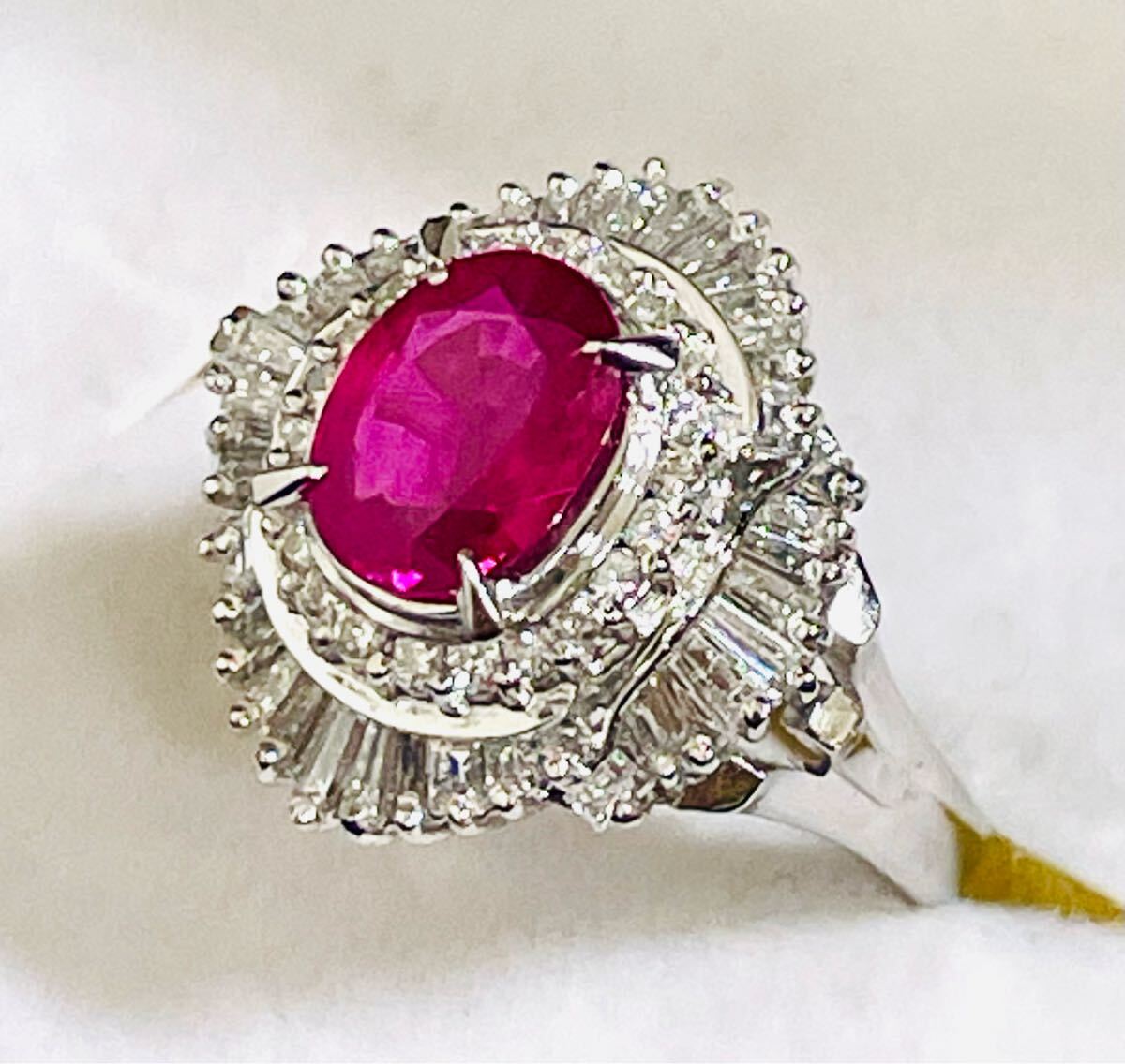こちらは、Pt900台にルビー1石&ダイヤ多数付きリングです。