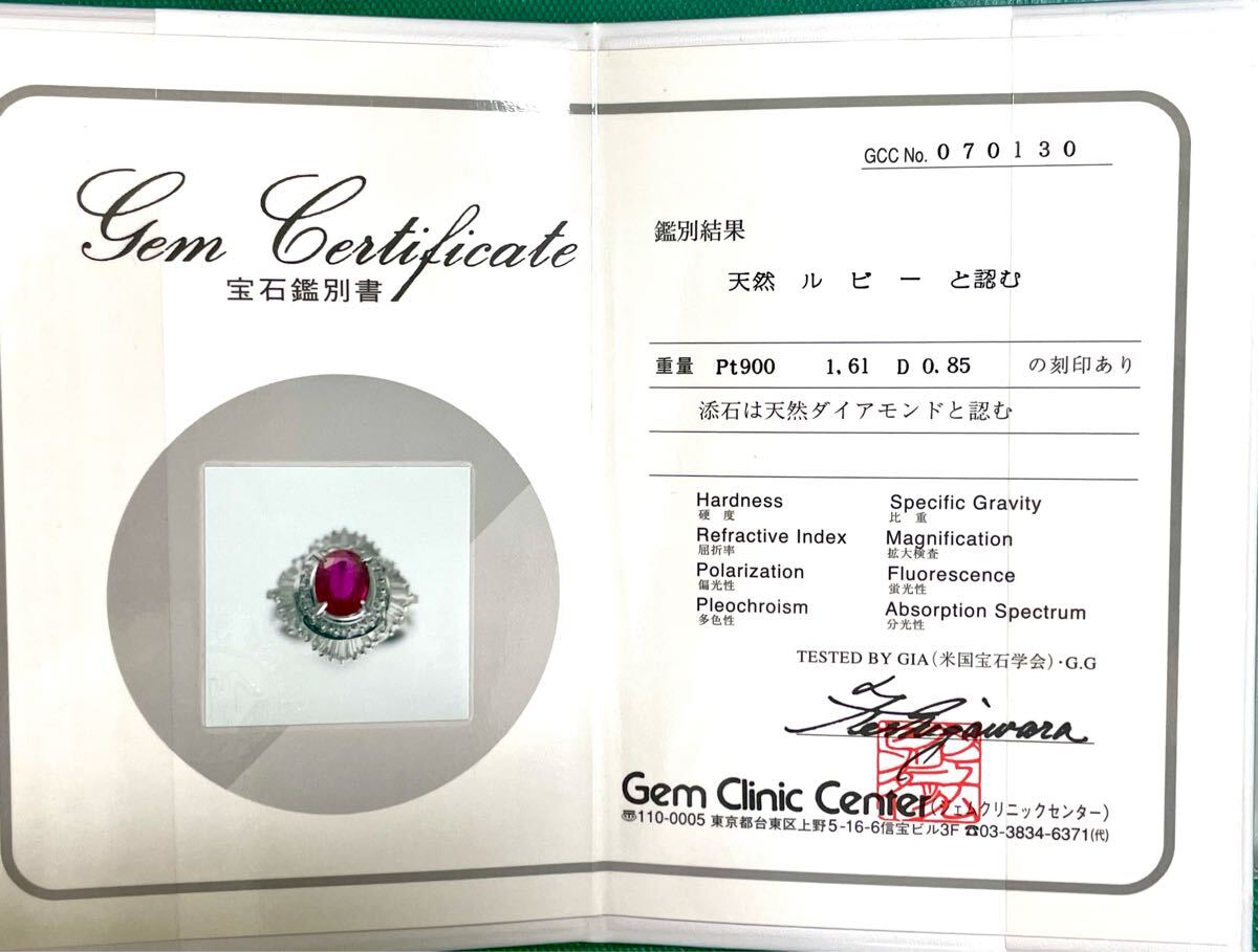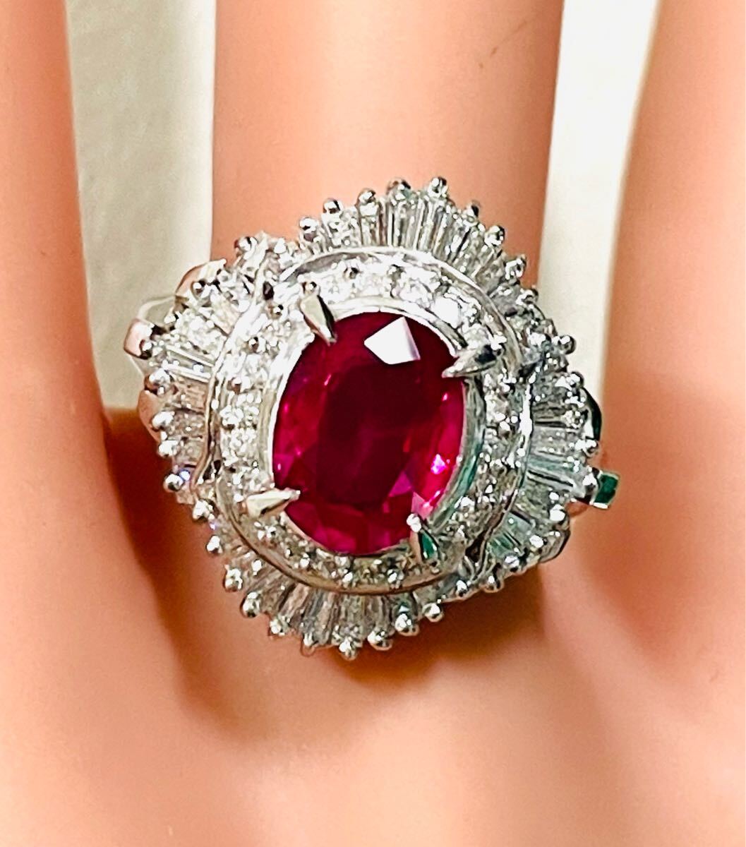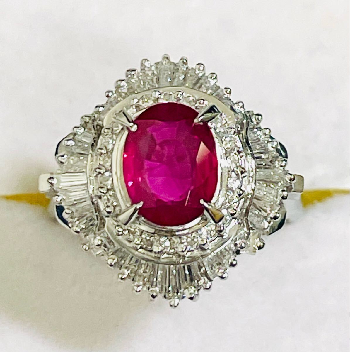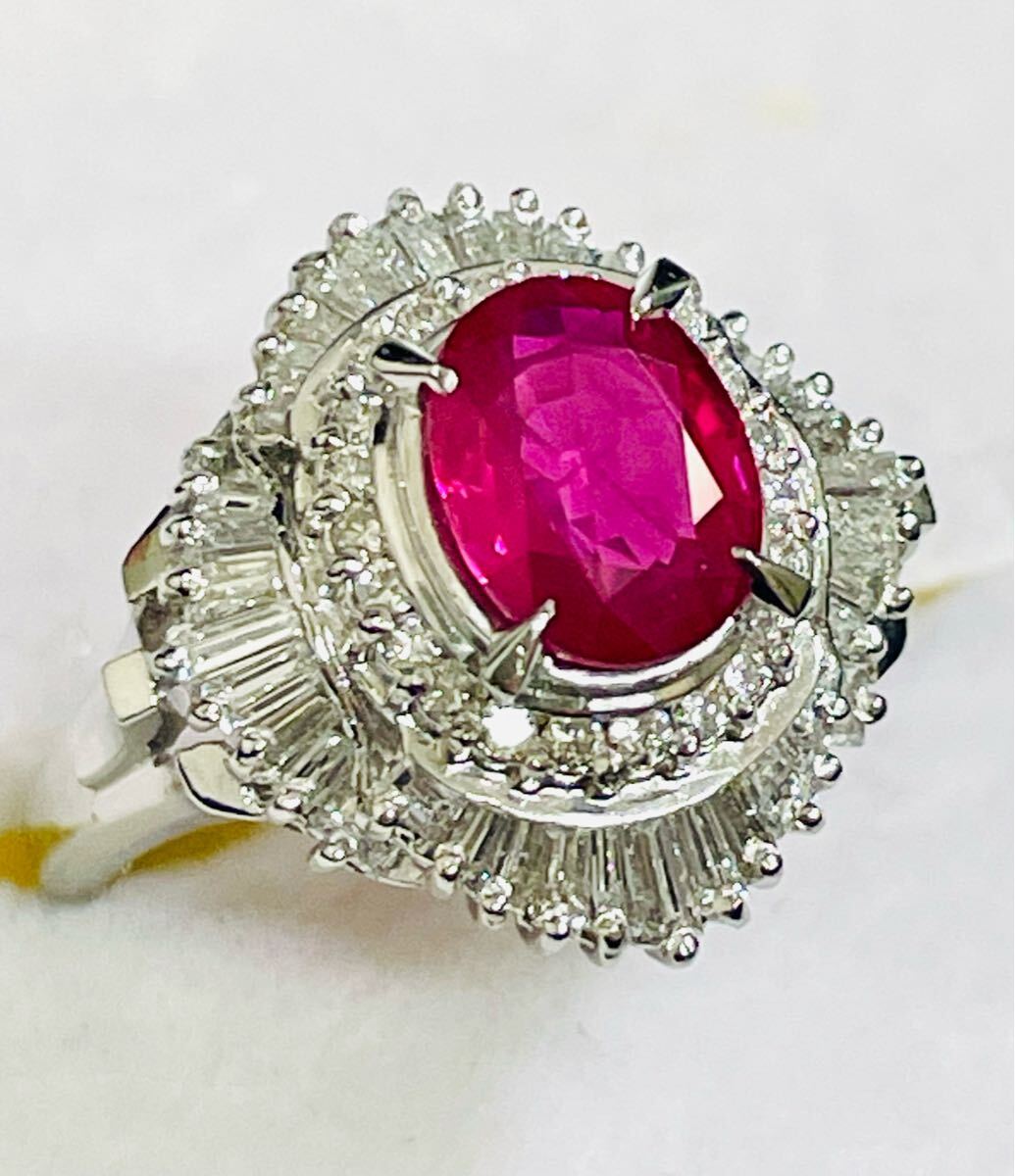 こちらは、Pt900台にルビー1石&ダイヤ多数付きリングです。
