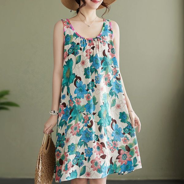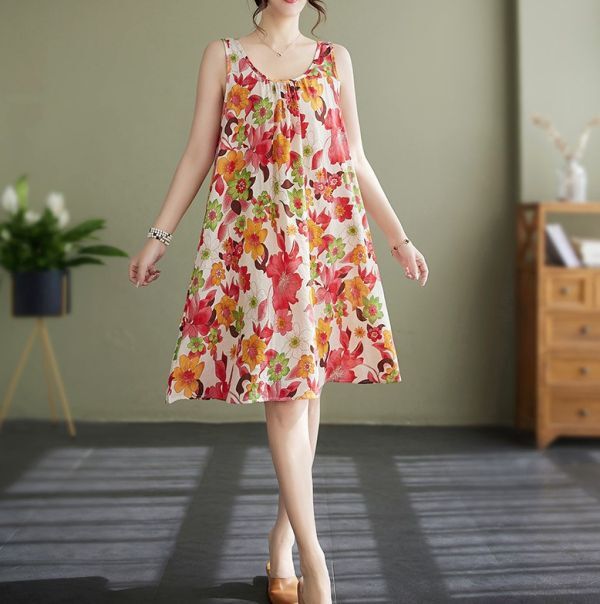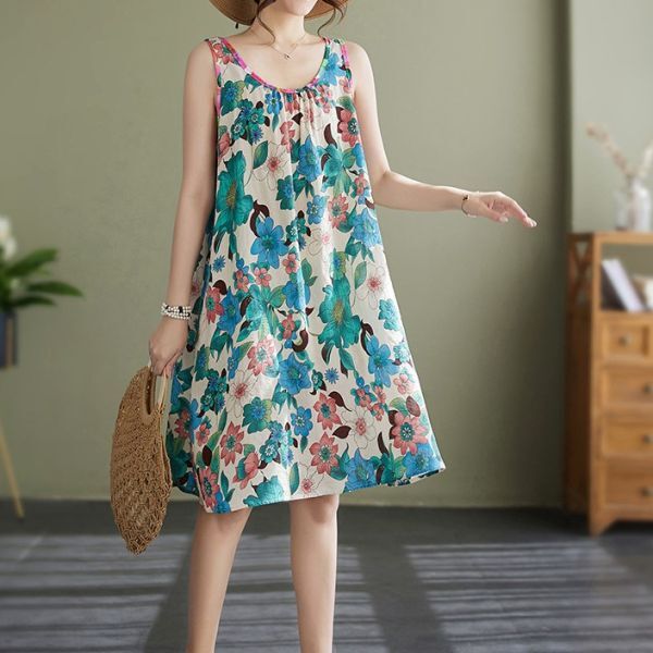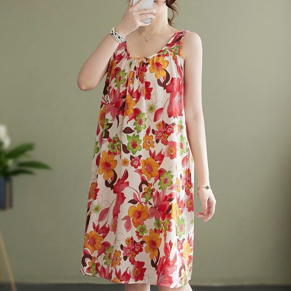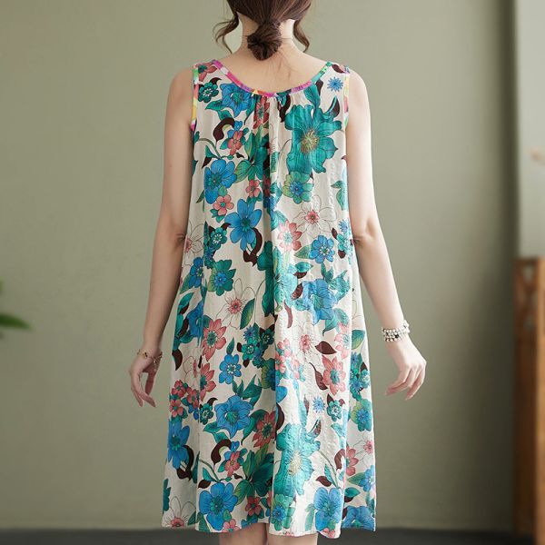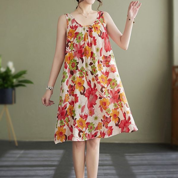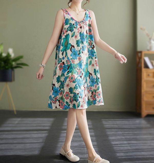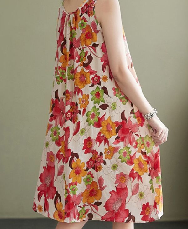 レディース ワンピース ノースリーブ フレアスカート 花柄プリント EY21
