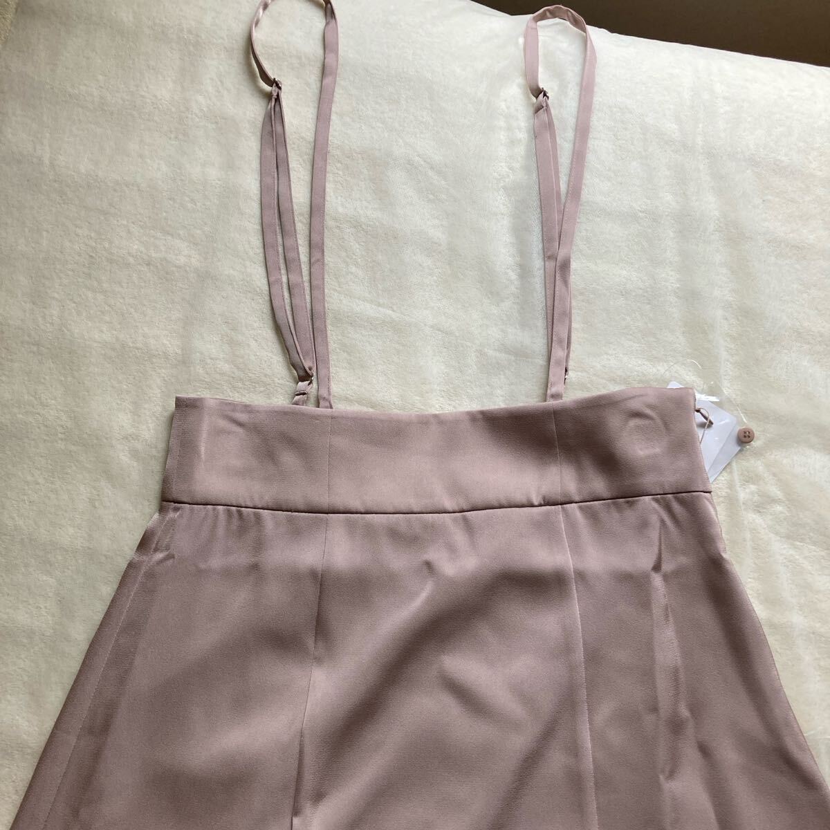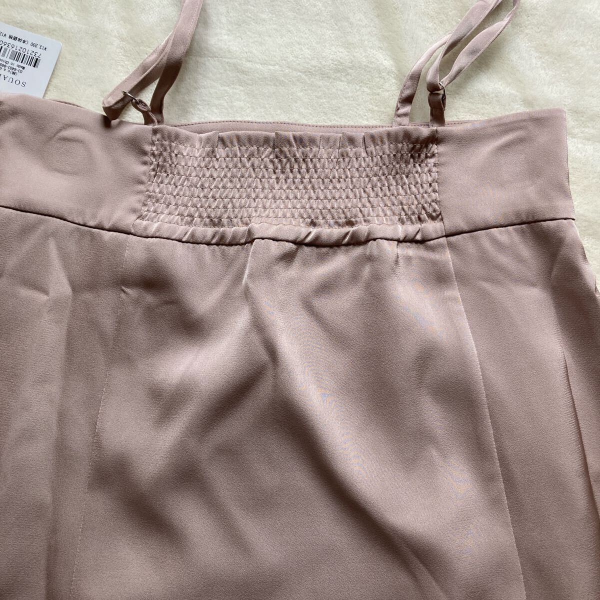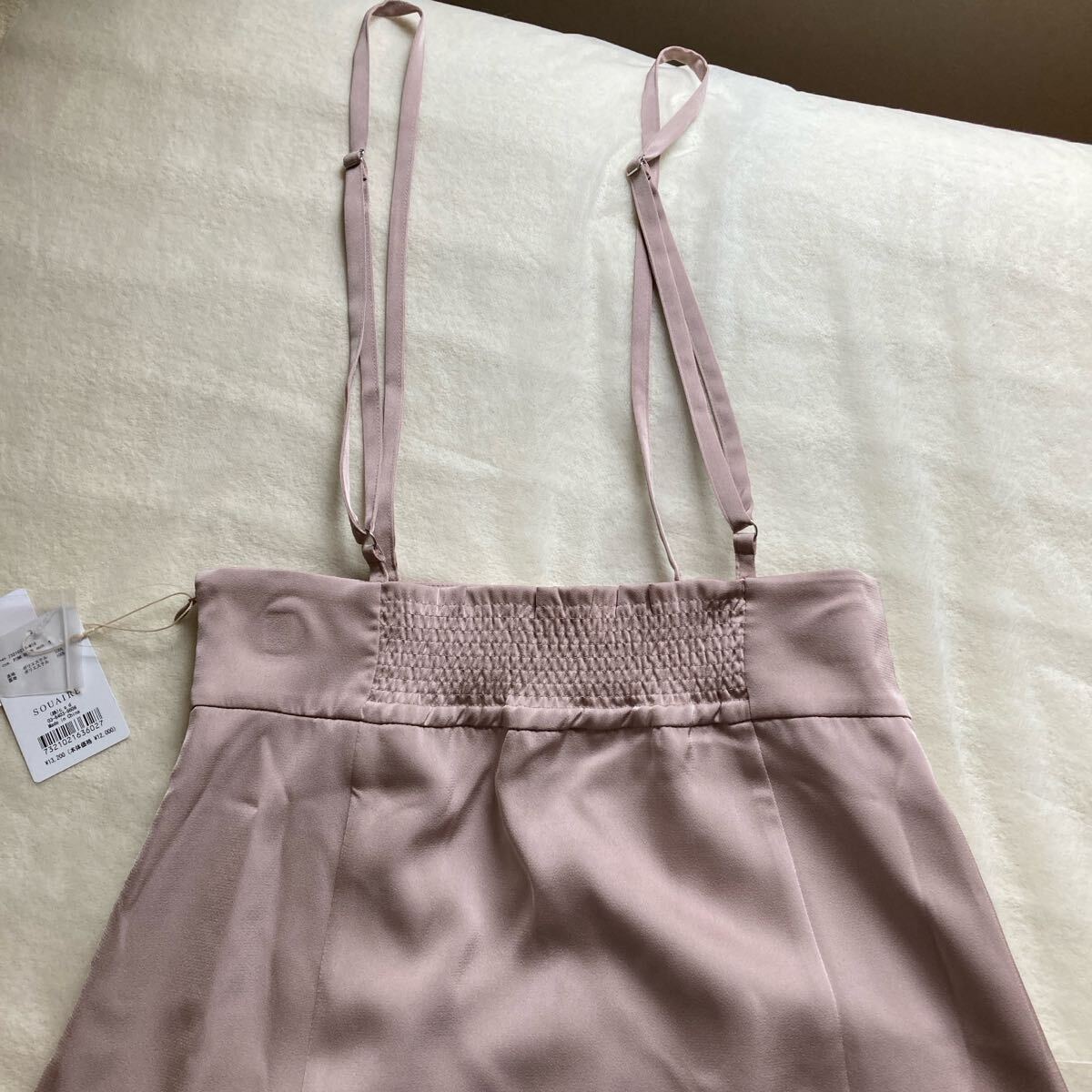 落ち感のある生地が魅力で、肩紐を外してスカート単体でも着用可能なデザインです。