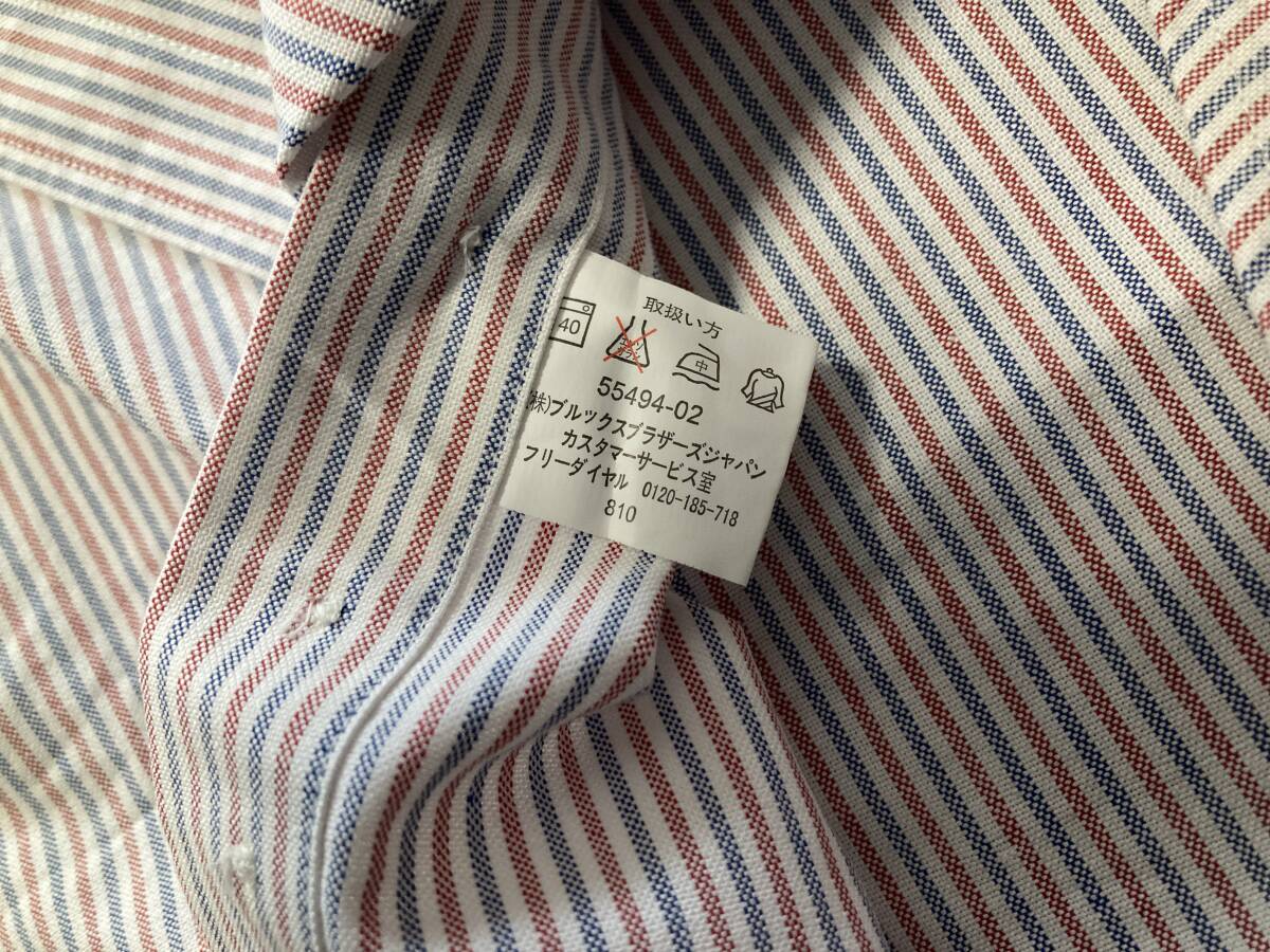 商品名:Brooks Brothers ストライプ柄 オックスフォード 長袖シャツ サイズ:表記S 平置き:肩幅43cm 身幅(脇下~脇下)50cm 着丈(襟付根~裾)77cm 袖丈(肩~袖先)59,5cm ※素人採寸の為多少の誤差はご了承下さい。 カラー:ホワイト、レッド系、ブルー系 状態:(株)ブルックスブラザーズジャパン。コットン100%(オックスフォード)。ボタンダウン。刺繍ロゴ。換えボタン付き。目立ったダメージ等無く良い方だと思います。 発送方法:レターパックプラス(配達記録付600円)orレターパックライト(配達記録なし430円) ※古着になりますので神経質な方、ご理解の無い方の御入札はお控え下さい。送料、振込手数料は落札者様の御負担となります。ノークレーム、ノーリターンでお願い致します。