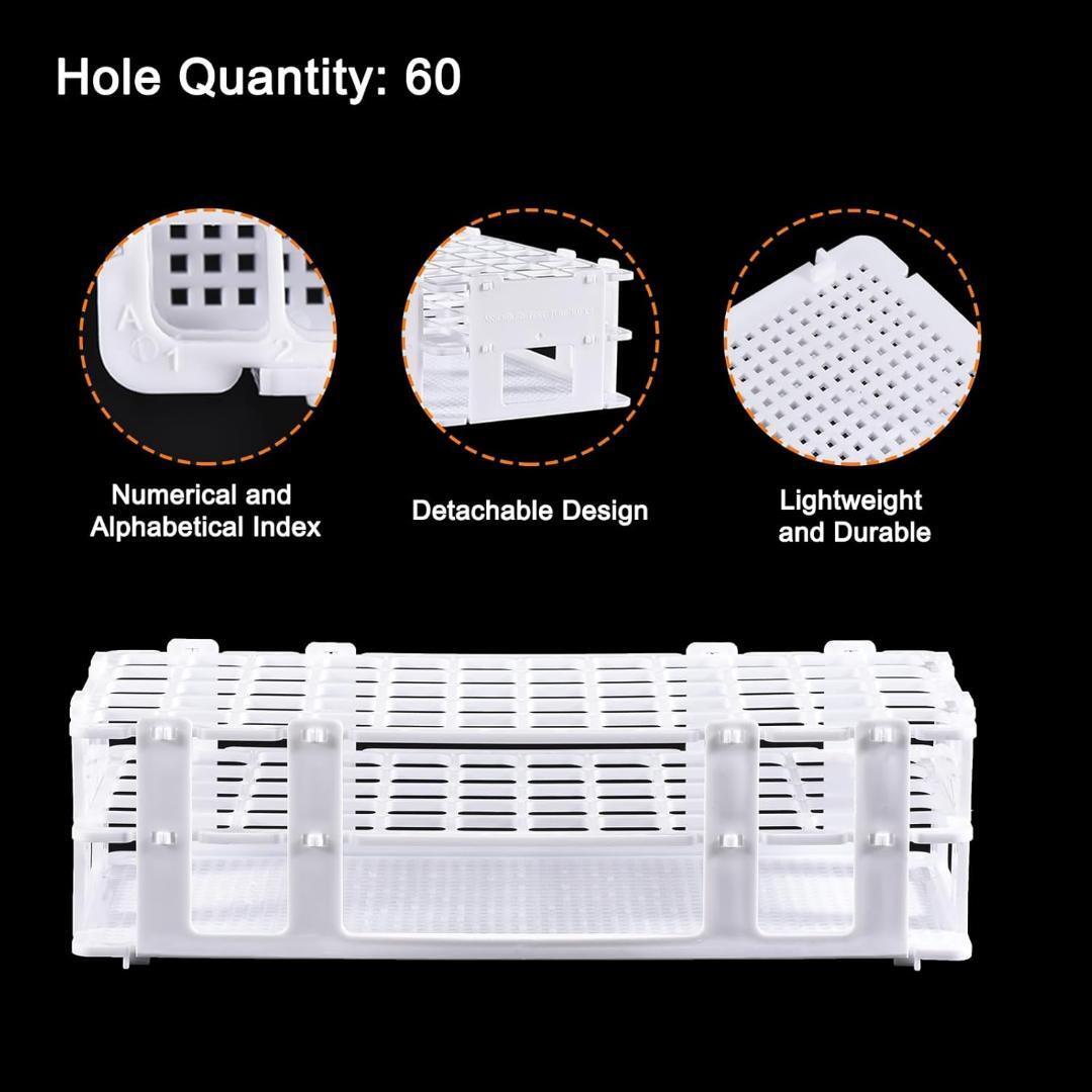 この試験管ラックは頑丈なプラスチックで作られており、軽量で持ち運びが簡単で、実験室での頻繁な使用に耐える十分な耐久性があります。滑らかな表面と取り外し可能なデザインにより、掃除やメンテナンスが簡単です。