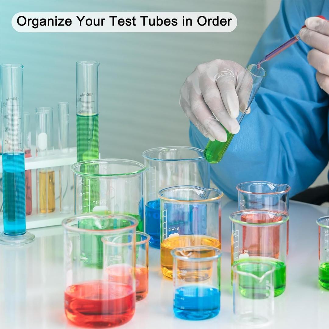 プロの実験室環境で実験を行っている場合でも、単に自宅で試験管を整理する便利な方法が必要な場合でも、この試験管ラックは完璧なアクセサリーです。多用途なデザインなので幅広い用途に適しており、さまざまな試験管の保持に適しています。