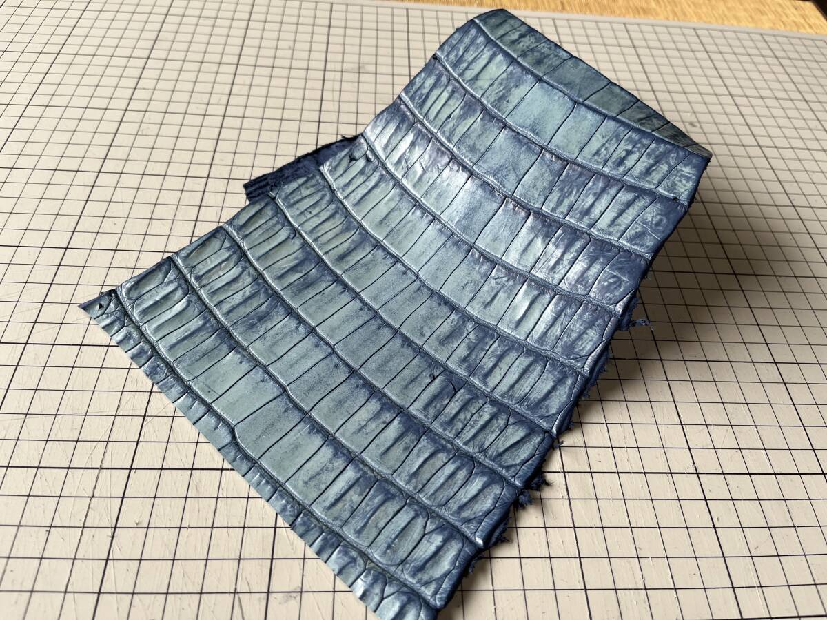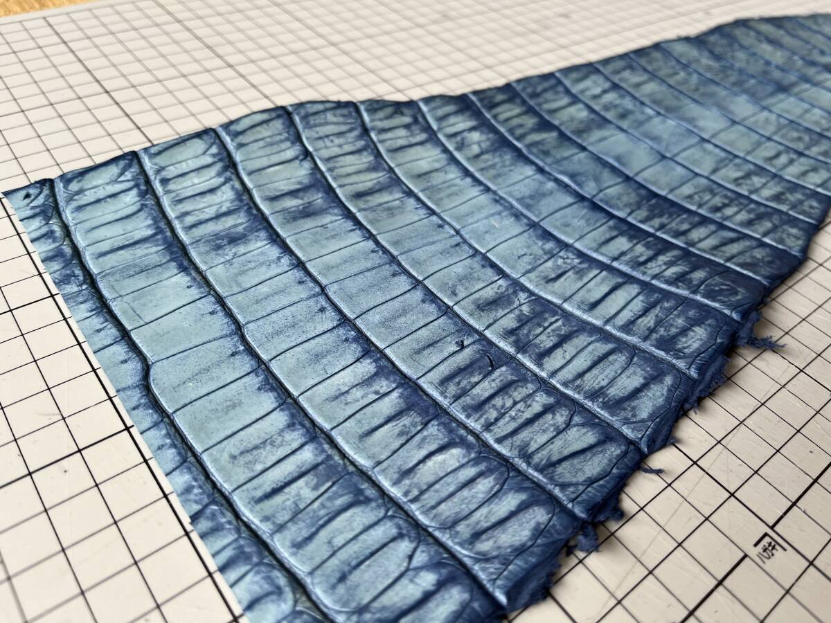 本来の染料染めのワニ革は銀面に透明感がありすっぴんの肌のようにもちもちでオイルを含ませると非常に深みのある表情を生み出します。