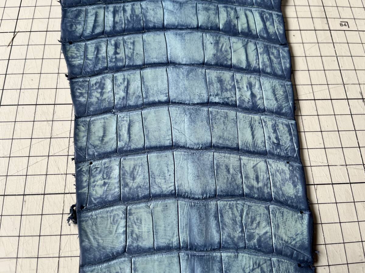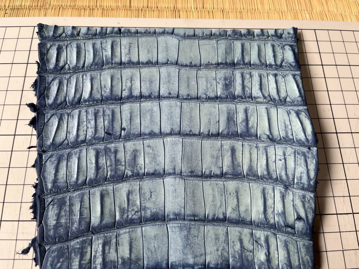 CR5-150★ムラ染ヴィンテージブルージーンズ★最高級ポロサスクロコダイルレザークラフトはぎれハギレ奥深い退色グラデーション