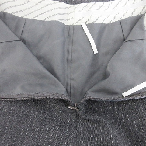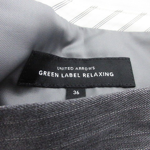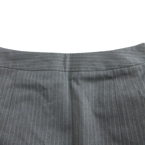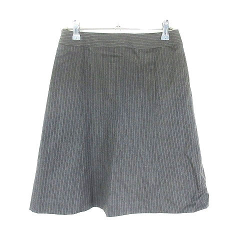 グリーンレーベルリラクシング ユナイテッドアローズ スカート フレア ひざ丈 サイドファスナー ストライプ 36 グレー 白 /T2 レディース