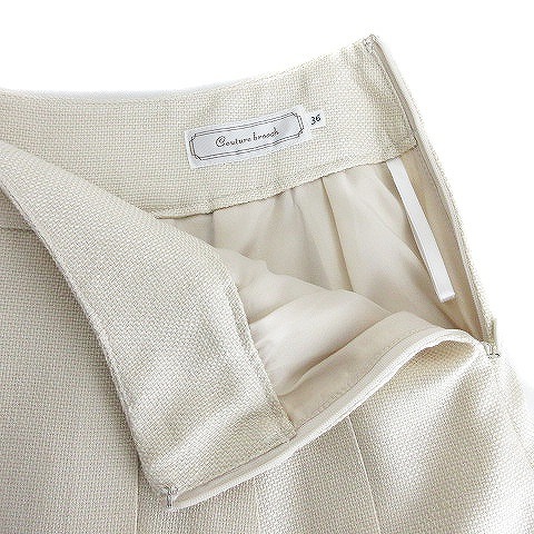 クチュールブローチ COUTURE BROOCH スカート フレア ひざ丈 サイドファスナー タック 薄手 無地 36 ベージュ ボトムス /T2 レディース