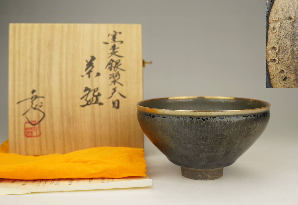 鳳】美品 鎌田 幸二 作 窯変銀漿 天目 茶碗 共箱 255-6検:清水卯一 香道具 油滴 鉄瓶 九谷 薩摩 常滑焼