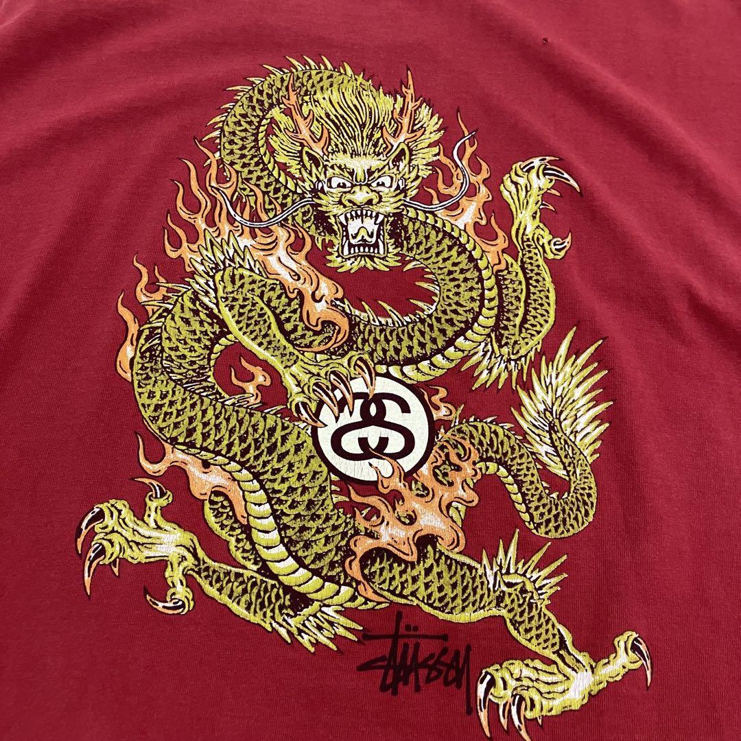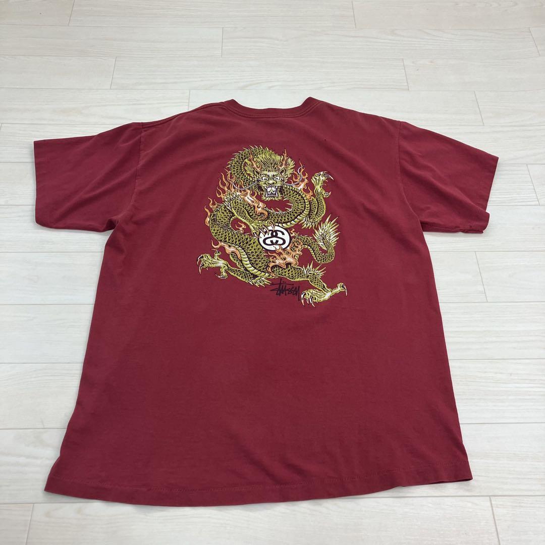 OLD STUSSY ステューシー 赤青タグ シングルステッチ USA製 90’s後期 バックプリント 2代目ドラゴングラフィック Tee W25729