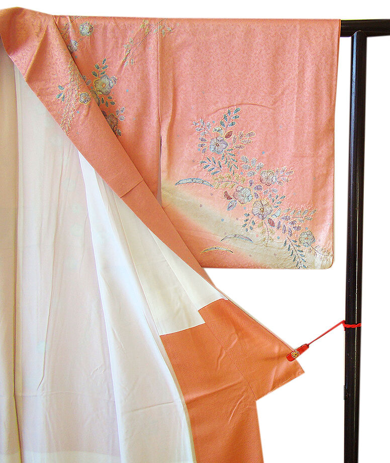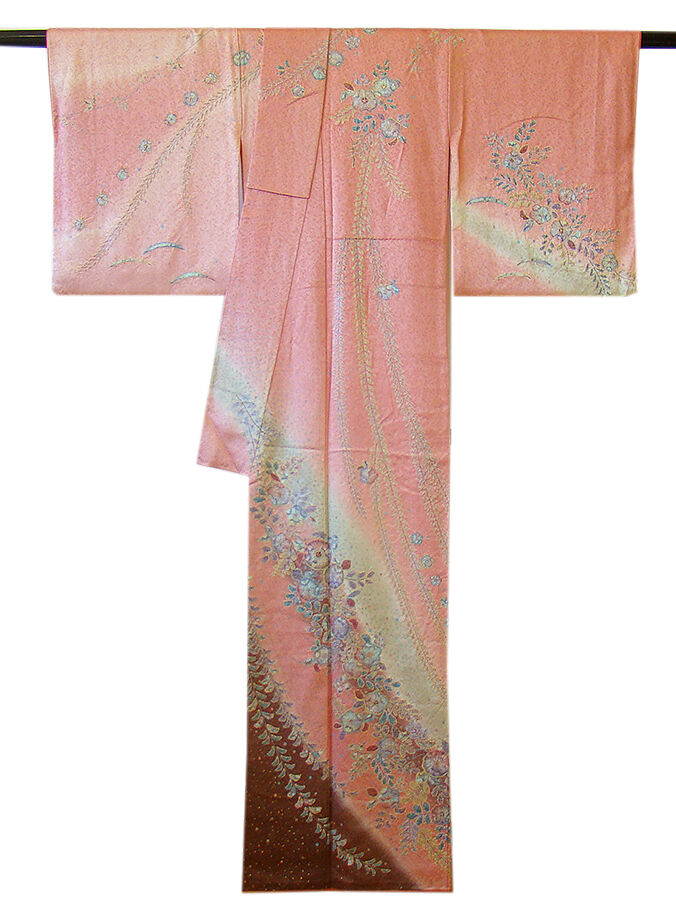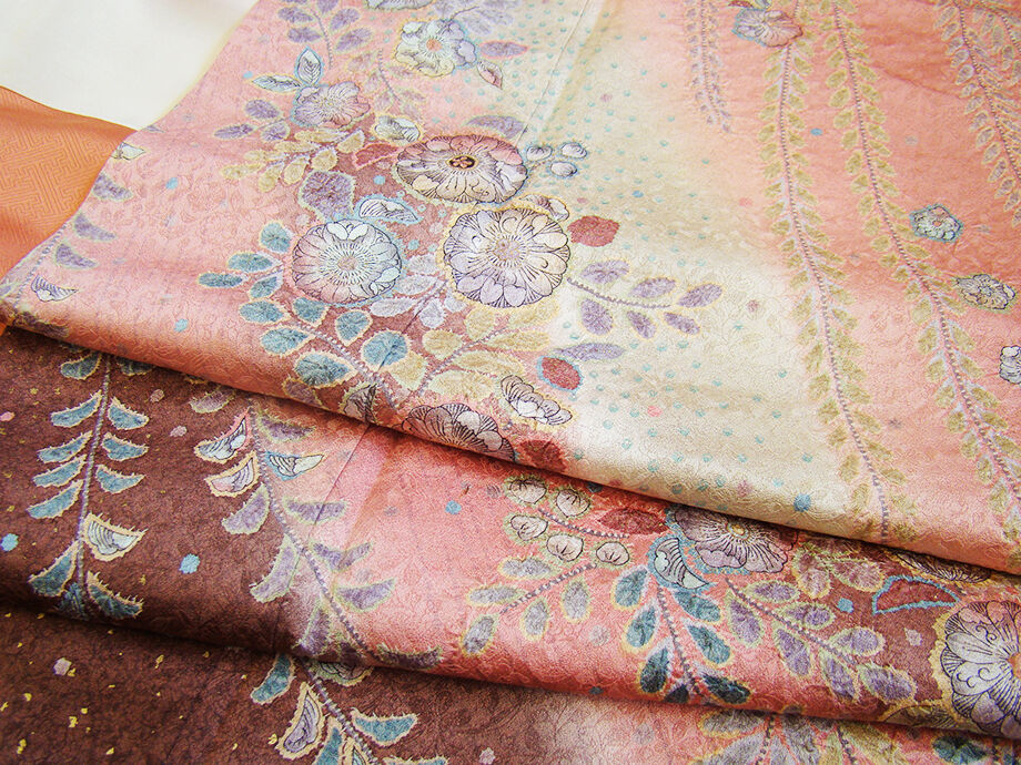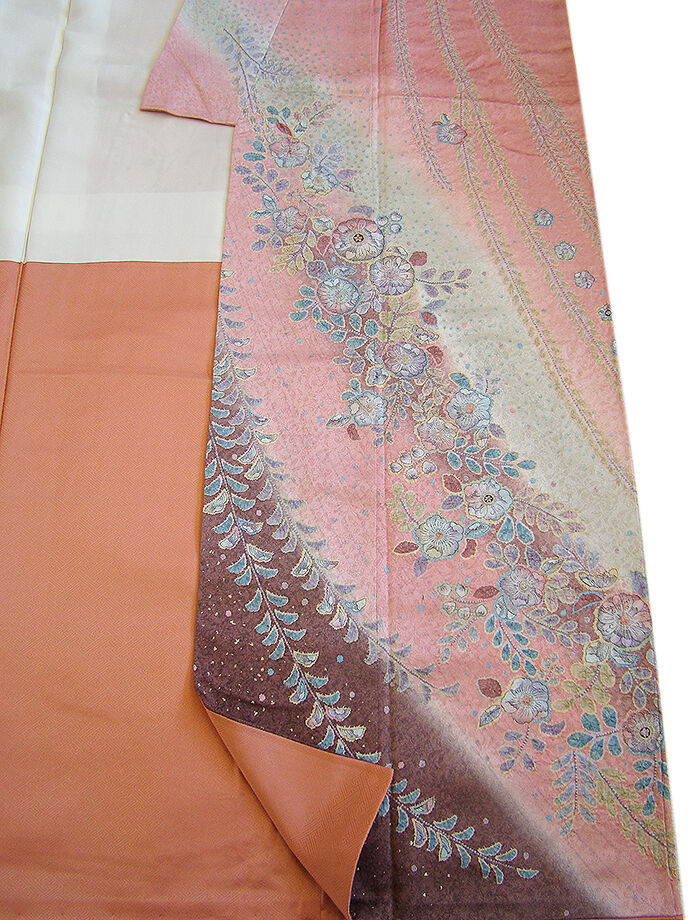| 商品説明 | こちらのお品は「袷」でございますので、10月~5月までお召頂ければと思います。 しなやかなさらりとした柔らかな手触りの着心地良いちりめん地の生地、 紅梅色地に裾にかけて紅檜皮色、砂色ぼかしに花草柄の地模様入り、 絞って染めての辻が花の染柄に金彩加工仕立て、 八掛は珊瑚朱色に地模様入りに柄入り(正絹)と細部にまで洒落が込められております。 |