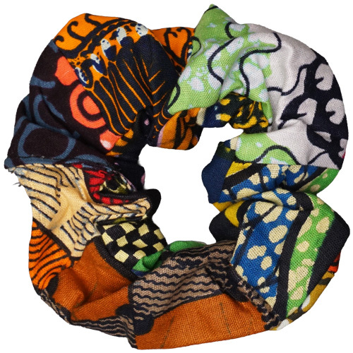 西アフリカのアフリカンワックス(パーニュ)で作ったパッチワークのシュシュです。