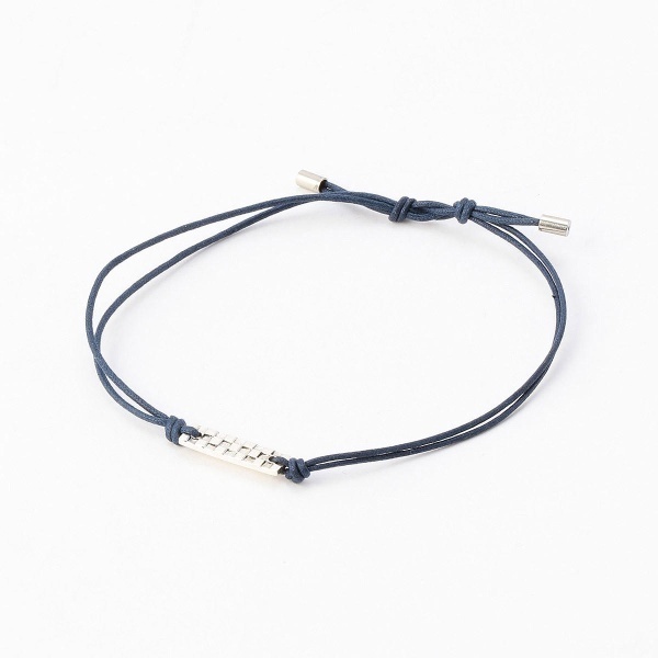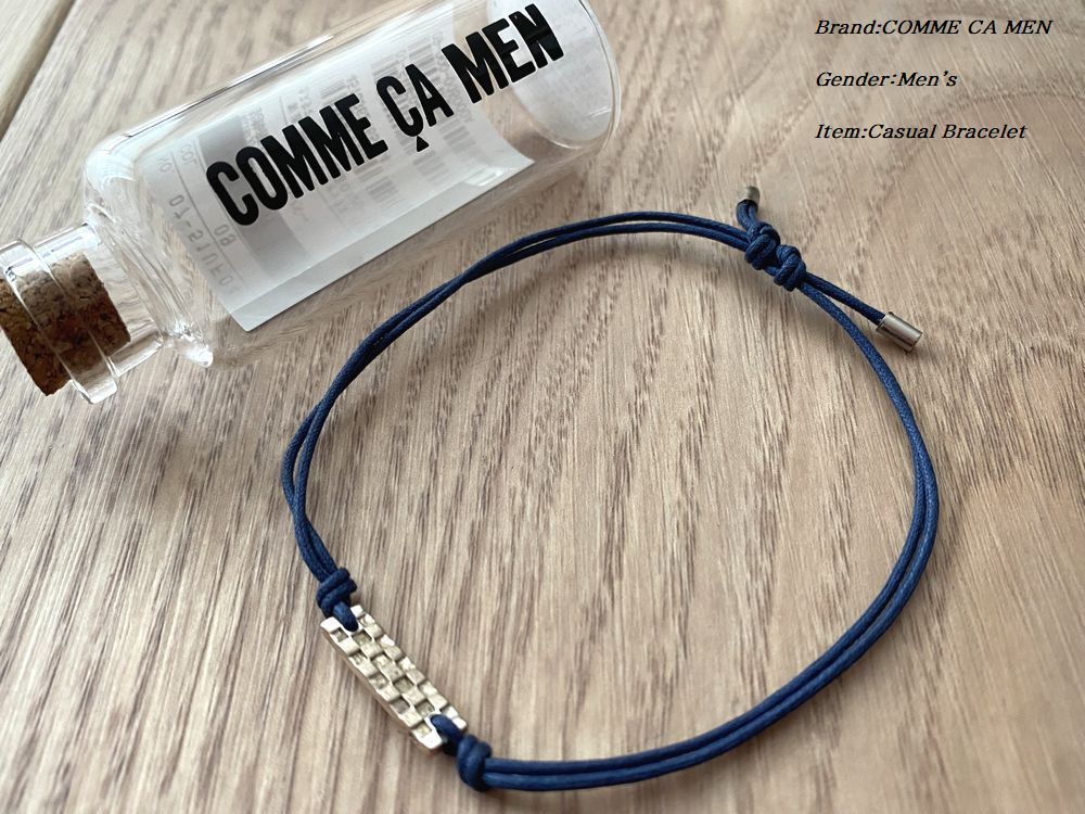 新品 定価5500円 COMME CA MEN コムサメン 日本製 市松柄モチーフ ブレスレット シルバー 銀 Fサイズ ネイビー