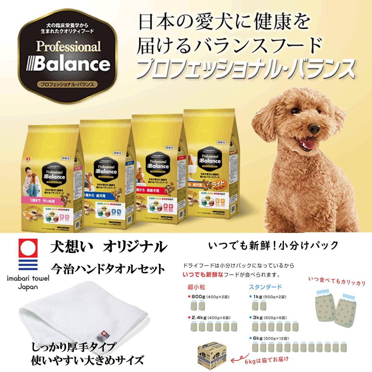 | 商品名 | プロフェッショナルバランス 1歳から 体重管理用(ライト) 6kg 【犬想いオリジナル 今治ハンドタオルセット】【タオルカラー |