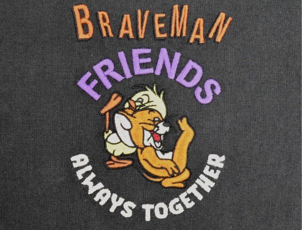 1920年代~40年代にアメリカでワークウェアを中心とした製品を世に送り出したブランド「The BRAVE-MAN」から「The BRAVE-MAN×TOM&JERRY 天竺半袖Tシャツ(TJB-2503)」のご紹介です。 体が大きく凶暴だが、おっちょこちょいでどこか憎めない部分のある猫のトムと、体は小さいが頭脳明晰で、追い掛けてくるトムをことも無げにさらりとかわすネズミのジェリーのドタバタを、ナンセンスとユーモアたっぷりに描いたアニメ作品をモチーフにしました。 背中には、トムの顔でイタズラをする黄色い鳥の姿を刺繍しました。 QUACKERとは、作中で登場する黄色い彼の鳴き声だそうです。 左胸には、イタズラが成功して大笑いのジェリーと黄色い鳥をデザイン。 なんだかとっても気が合いそうな二人ですね。 ボディーには、ややしっかりとした刺繍に負けない強さを持ったTシャツ生地を採用。 | |||||||||||||||||||||||||