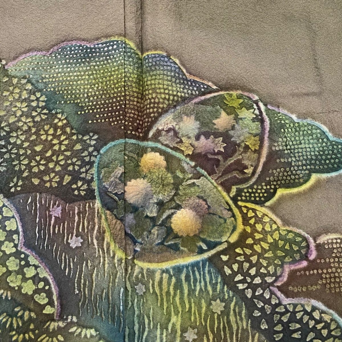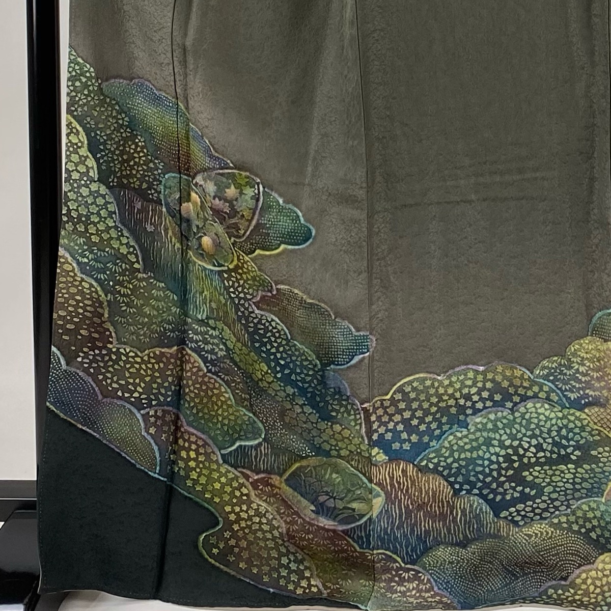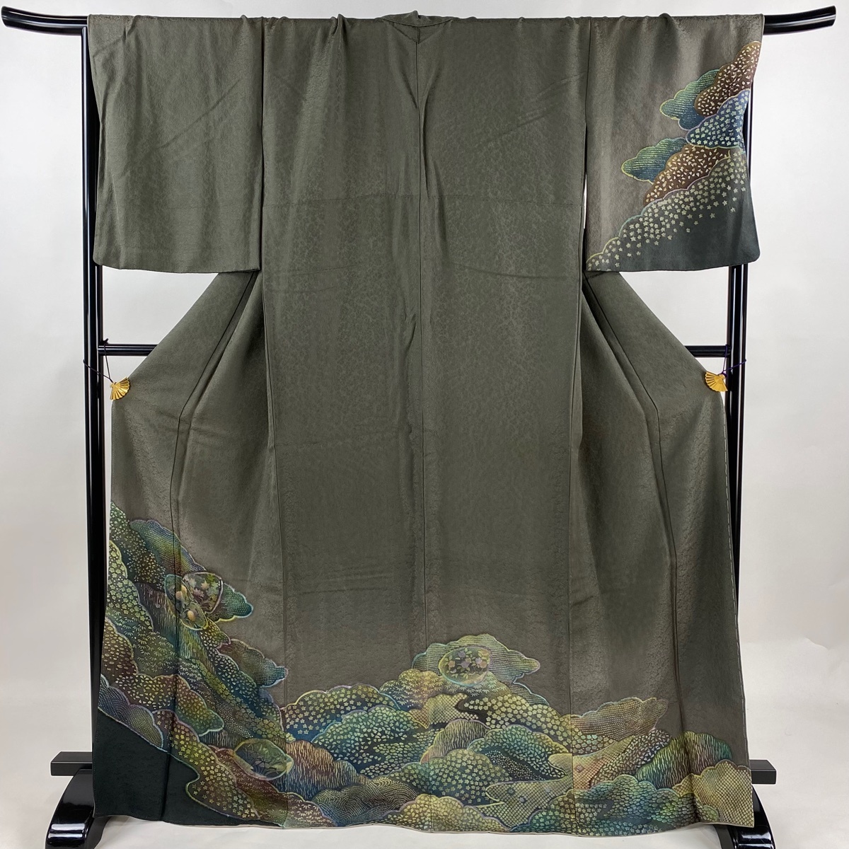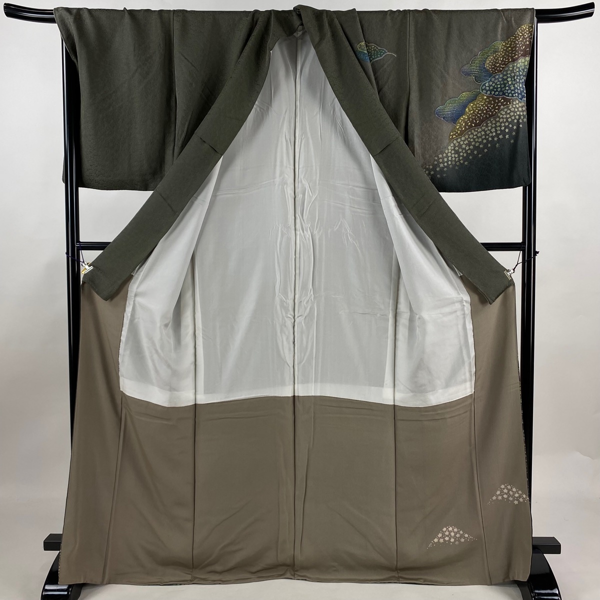 | 付下げ 名品 雲文 秋草 ぼかし 茶緑色 袷 身丈170.6 裄丈69 L 正絹 【中古】 |