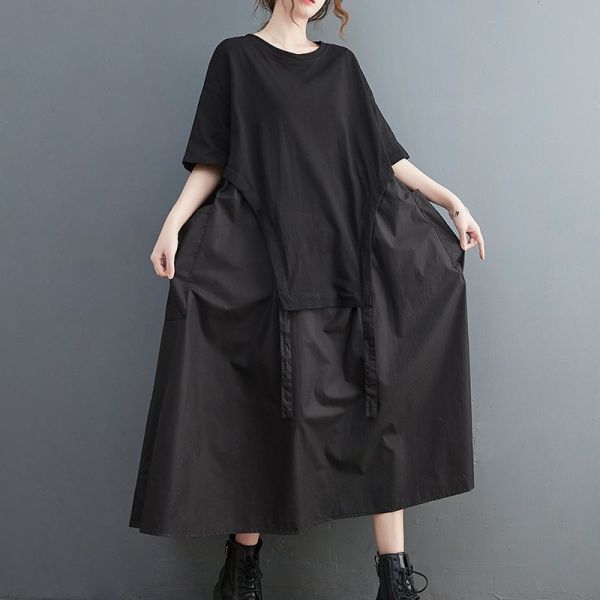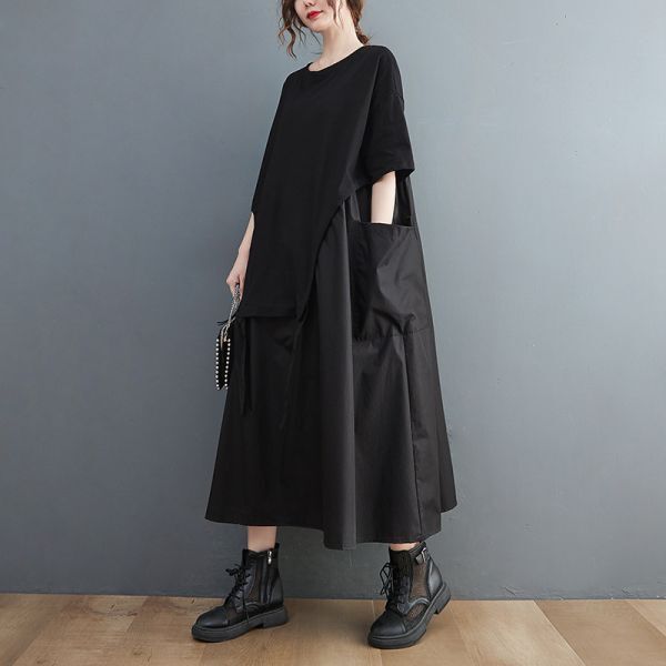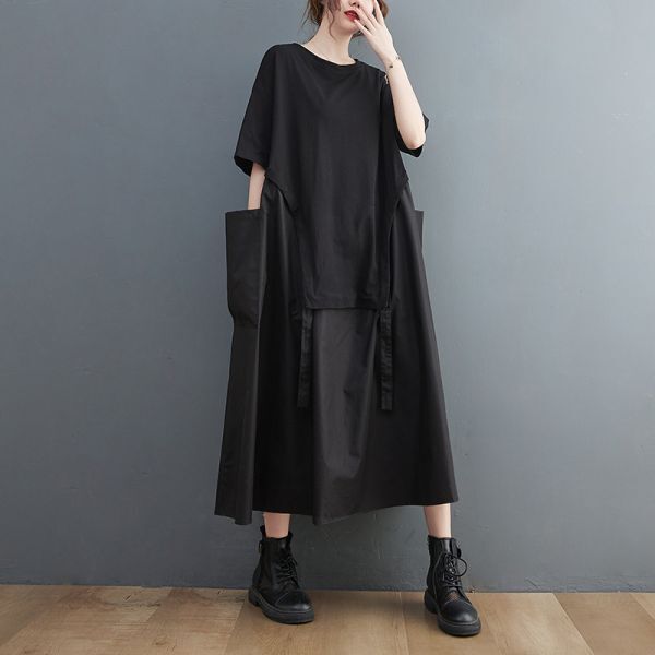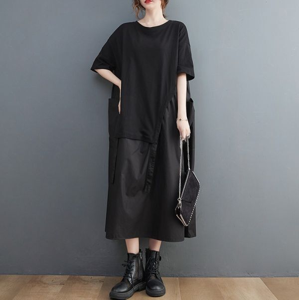 ★★★レディース ワンピース ロング ラウンドネック 体型カバー EX28