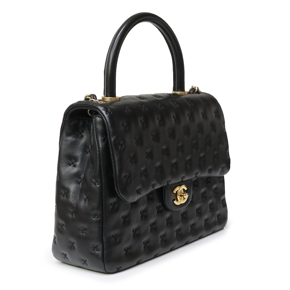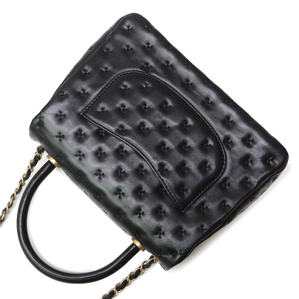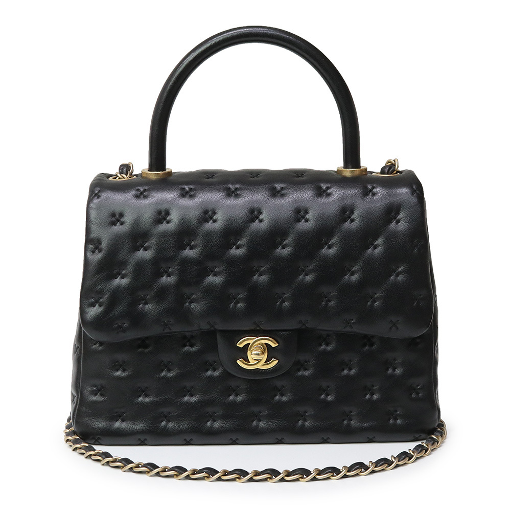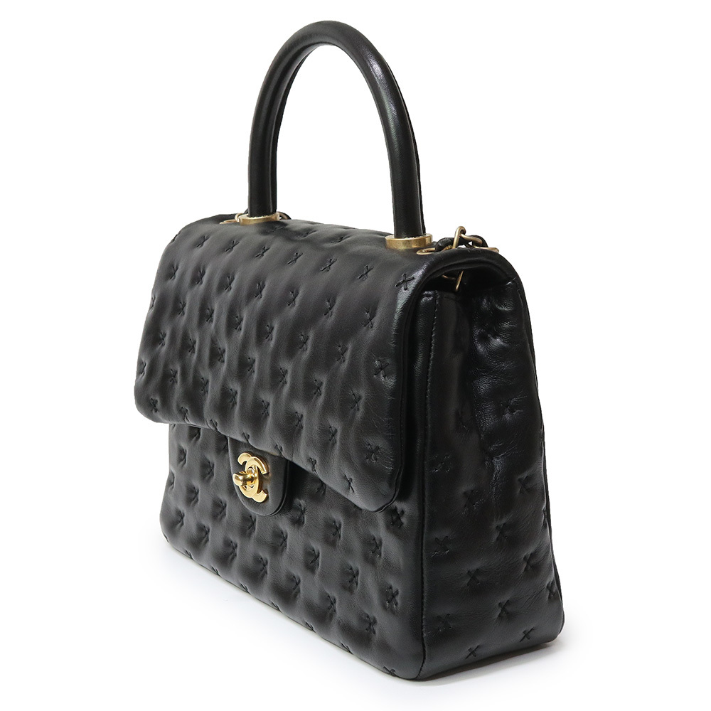 (美品)シャネル CHANEL マトラッセ トップハンドル クロスステッチ チェーン ショルダー ハンドバッグ ラムスキン ブラック 黒 A98725
