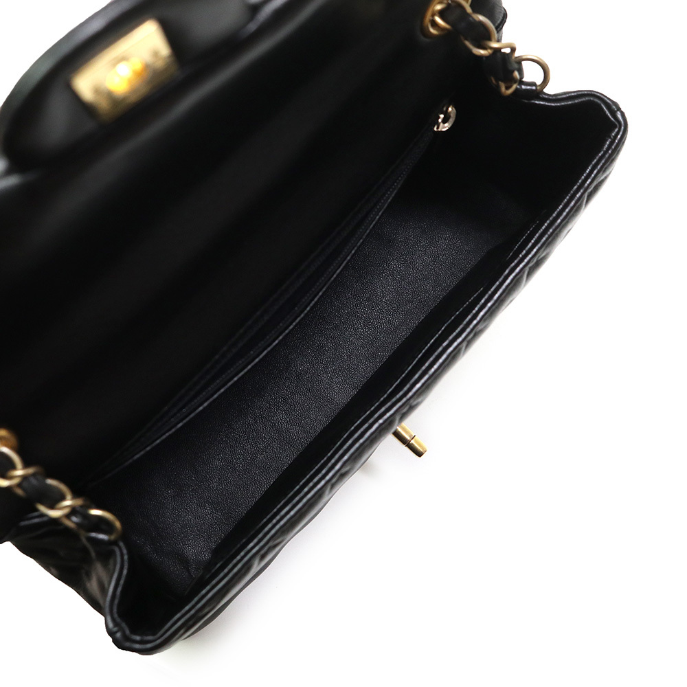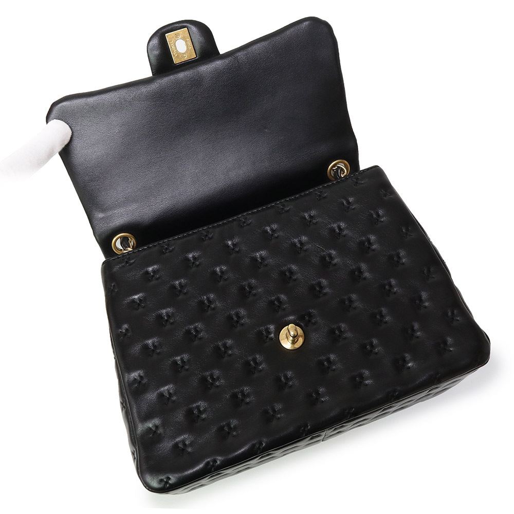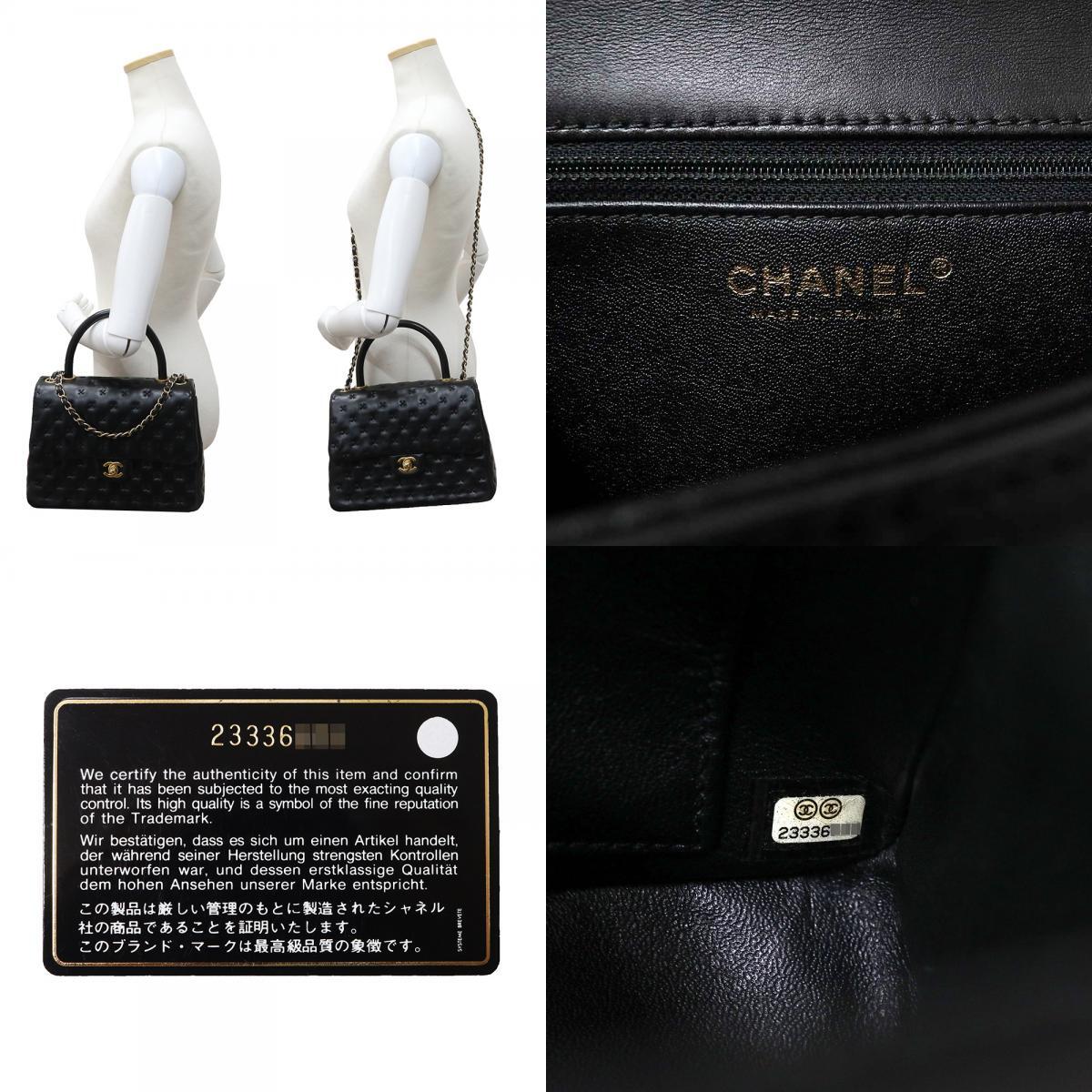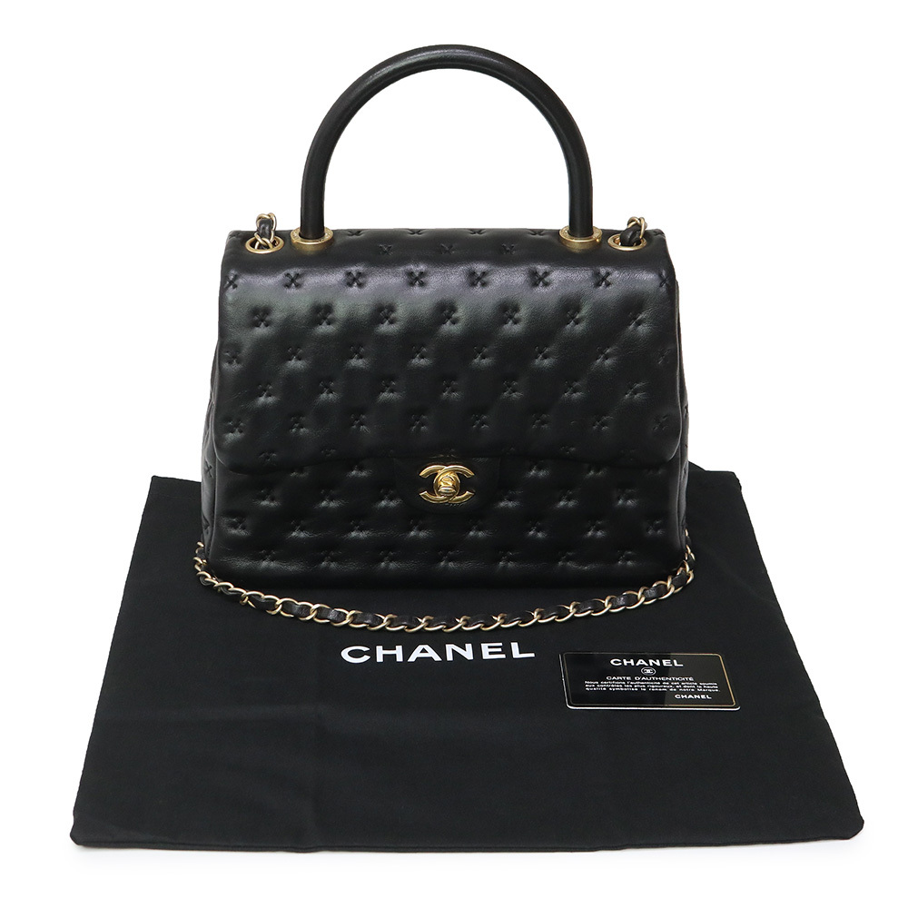 (美品)シャネル CHANEL マトラッセ トップハンドル クロスステッチ チェーン ショルダー ハンドバッグ ラムスキン ブラック 黒 A98725