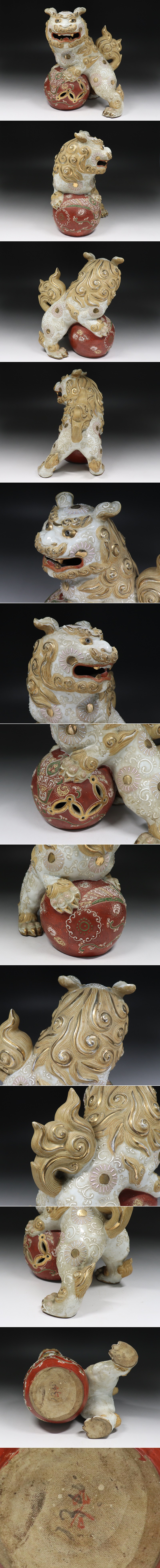 | ■九谷■玉獅子・玉乗獅・ 置物・高さ約25㌢・細密彫刻・縁起物・魔除け・厄除け・f6116h | ||||||||||||||||||||