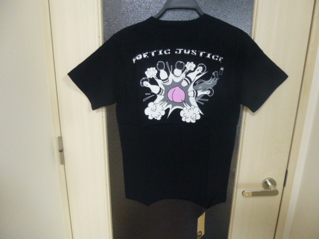 新品桃太郎ジーンズPOETIC JUSTICEジンバブエコットンボーリングプリントTシャツ黒